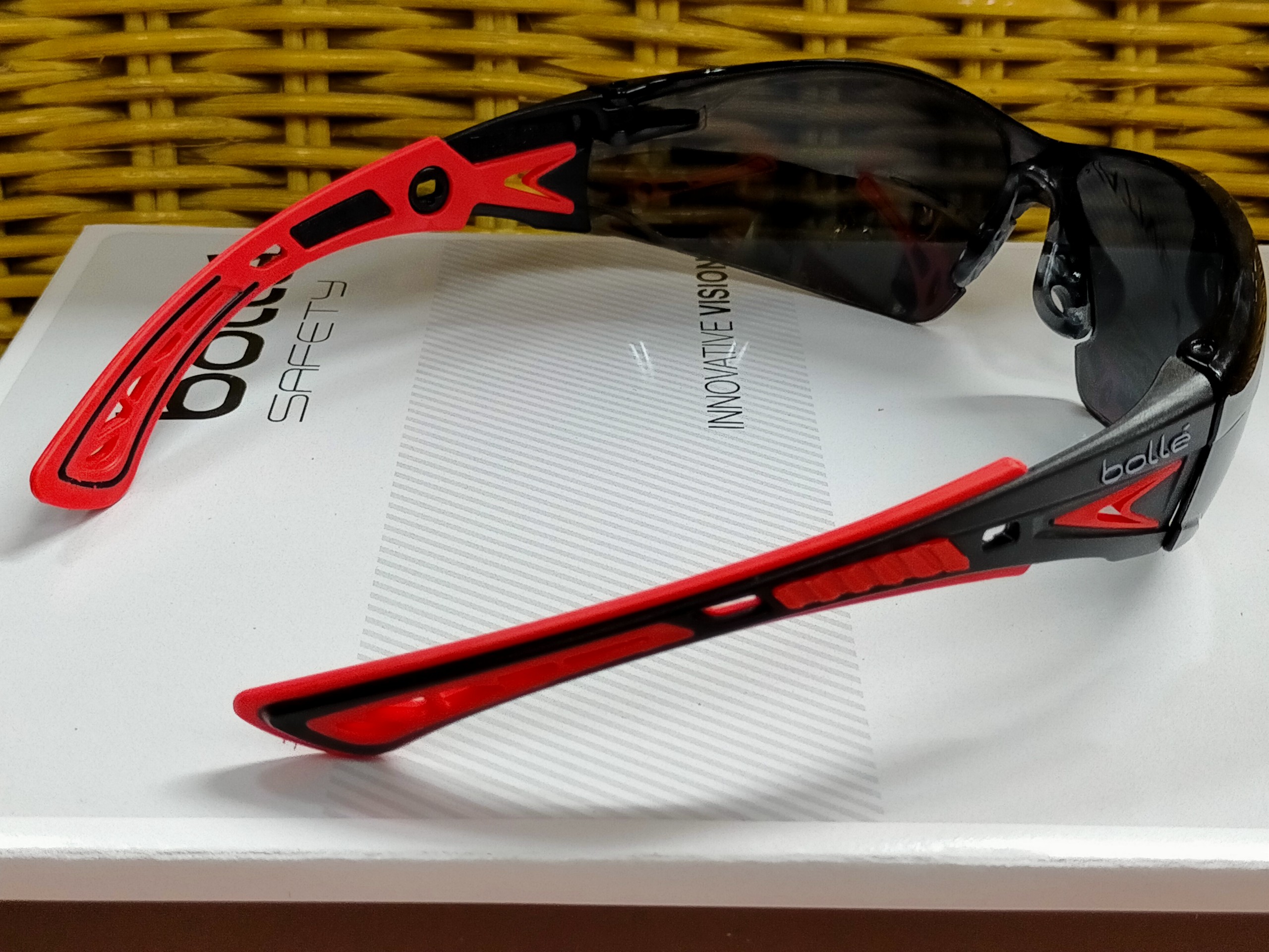 KÍNH BẢO HỘ HÃNG BOLLÉ, THƯƠNG HIỆU CỦA PHÁP Type: RUSH PLUS CLEAR LENS Kính có Lớp phủ Platinum chống xước và sương mù. Bảo vệ 99,9% tia UVA / UVB. Tiêu chuẩn: EN
