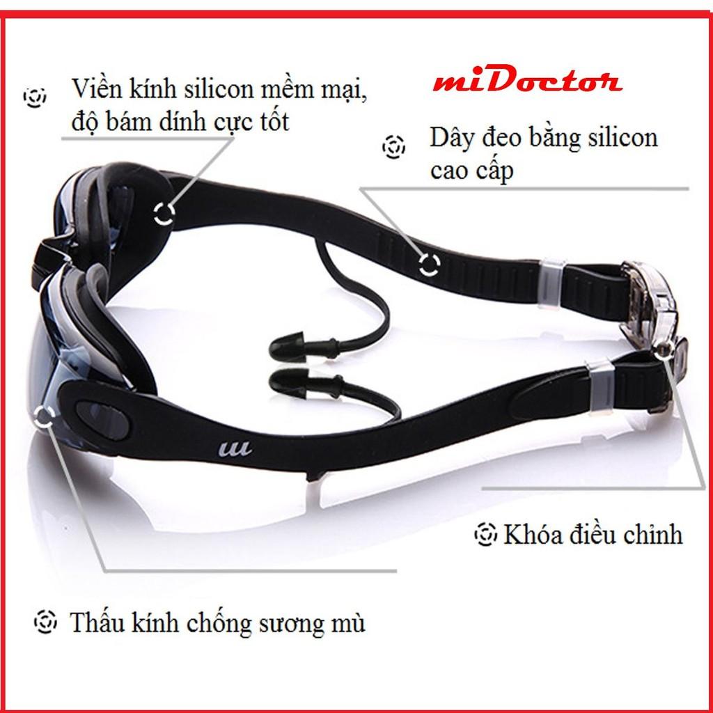 Dây đeo dễ chịu, bám sát khuôn mặt An toàn tuyệt đối dưới nước Kính Bơi Cao Cấp miDoctor Kính bơi giúp bảo vệ mắt khi hoạt động dưới nước. Hàng bảo hành 1 đổi