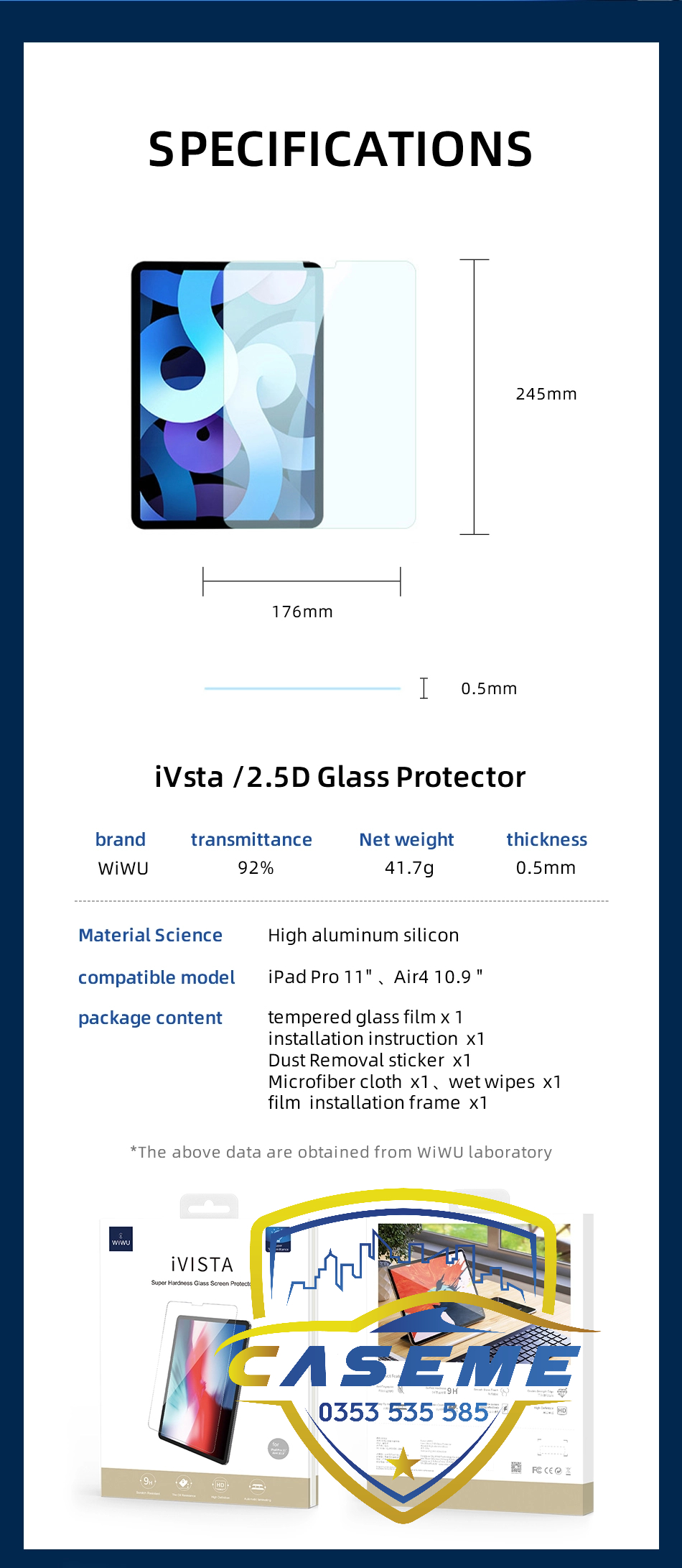 - Từ thương hiệu WIWU sản xuất riêng cho các dòng iPad - Chất liệu PT siêu mỏng 0.19mm, bám dính tốt - Dán có độ cứng 4H chống trầy tốt - Dễ dán và