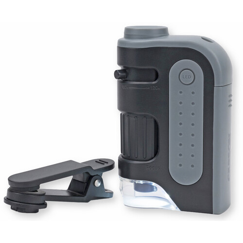 Kính hiển vi bỏ túi kèm kẹp điện thoại Carson MicroBrite Pro LED MM-350 (60-120x) (Hãng Carson - Mỹ)