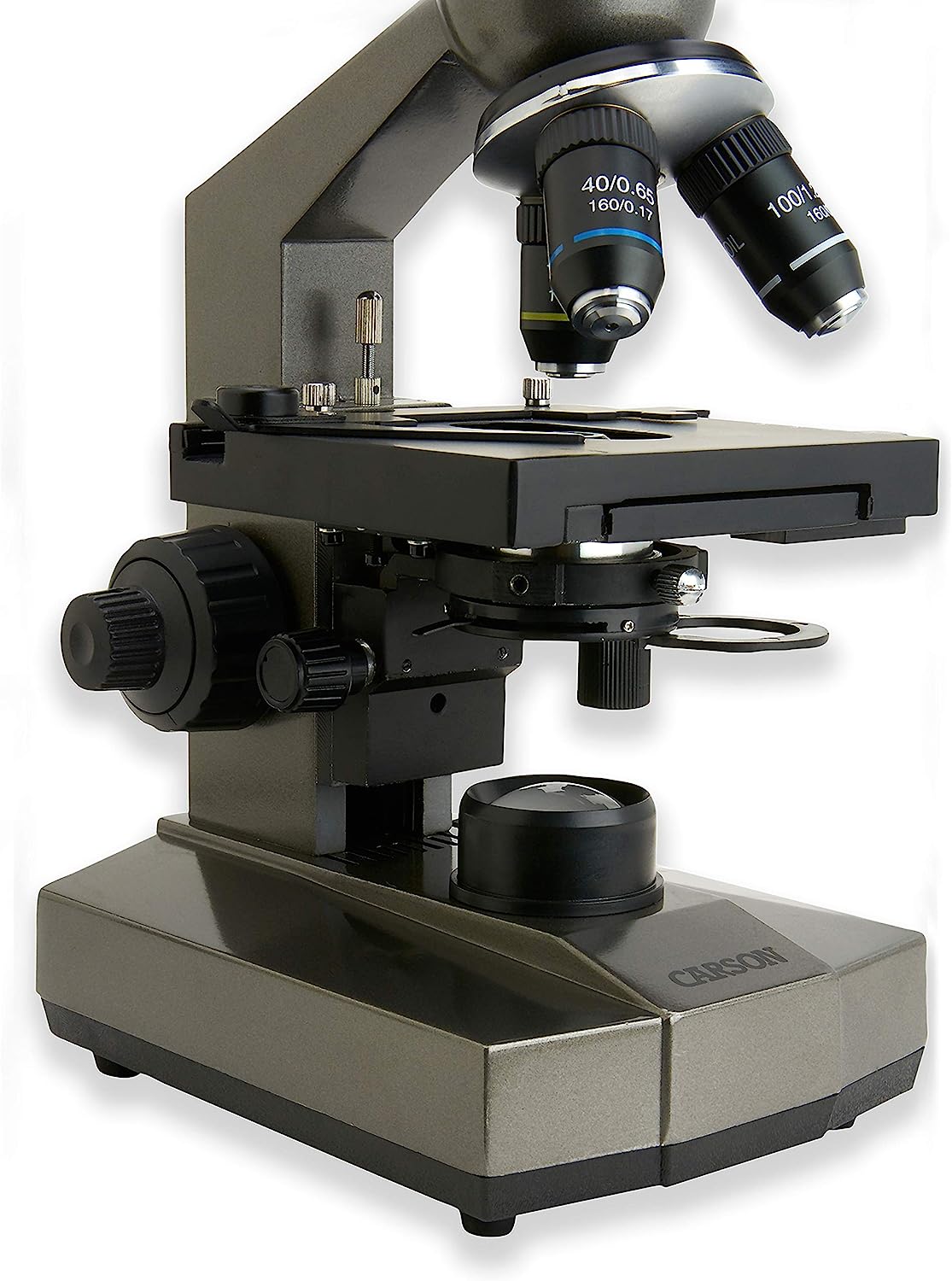 Kính hiển vi có đèn LED 100x-1000x trung cấp chất lượng cao với Bàn soi cơ học của Carson. Kính hiển vi này hoàn hảo cho học sinh trình độ trung cấp đang tìm kiếm một thiết bị thuận tiện và tiện dụng mang lại hình ảnh sắc nét và rõ ràng.