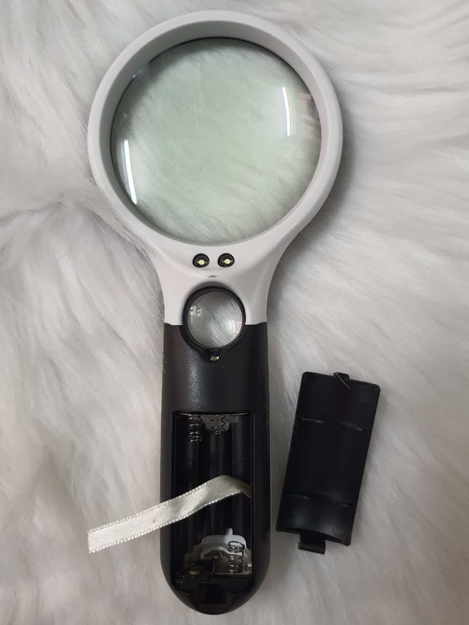 Kính lúp 6902A-B có đèn led được làm bằng thủy tinh quang học cao cấp, bao bọc bởi tay cầm bằng nhựa ABS trắng cứng trơn tru
