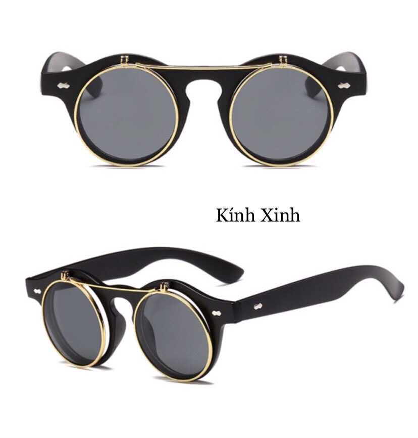 Kính râm, Kính mát Nam Nữ Mắt Tròn 2 Tròng Lật Mở Nắp Gọng Nhựa Chắc Chắn