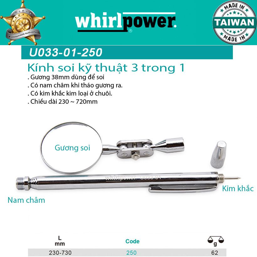 Kính Soi Kỹ Thuật 3 trong 1 Whirlpower U033-01-250 | Tân Thành Phát