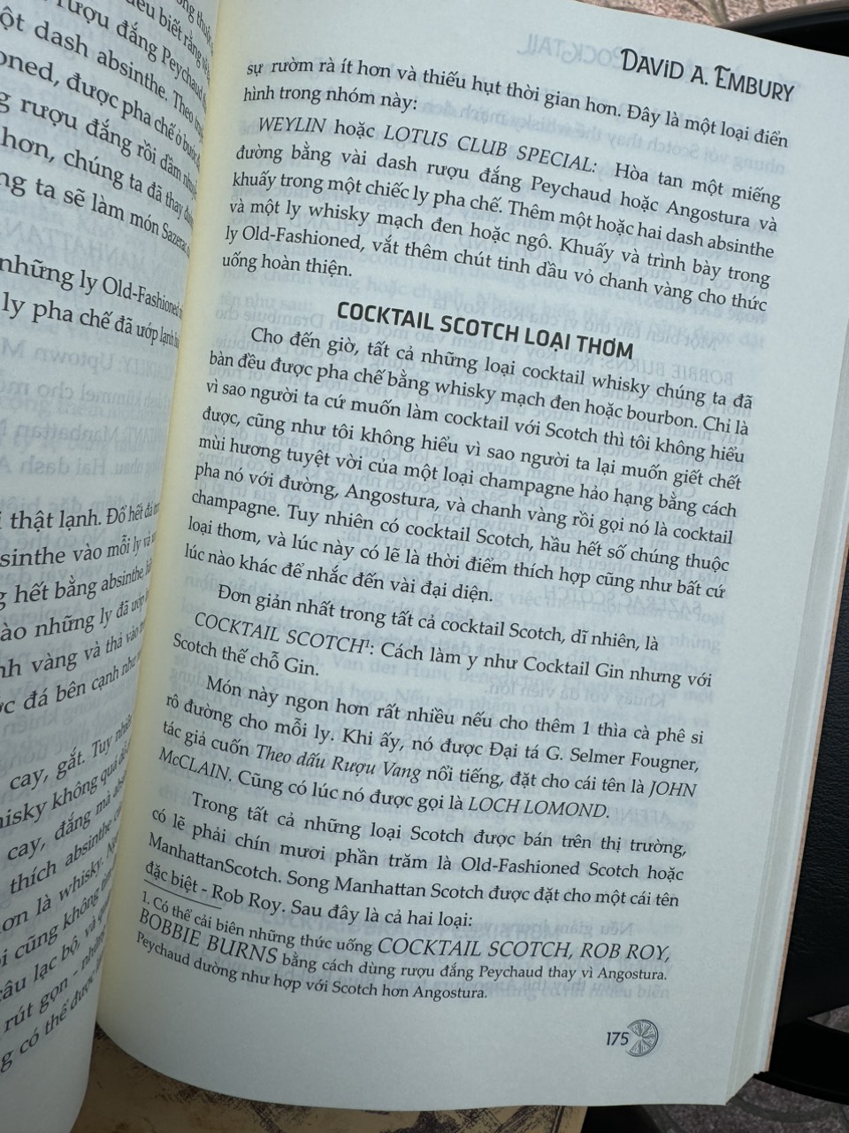 Tất tần tật về cocktail là cuốn sách mà David A. Embury đã đầu tư nhiều thời gian và công sức viết nên, mang giọng điệu hóm hỉnh và màu sắc cá nhân rõ rệt thể hiện kiến thức sâu rộng của ông trong lĩnh vực pha chế đồ uống có cồn. Tác giả mang đến cho bạn đọc những kiến thức cơ bản về rượu mạnh, cách phân loại cocktail và một vài công thức gợi ý để thưởng thức chúng sao cho hoàn hảo nhất.