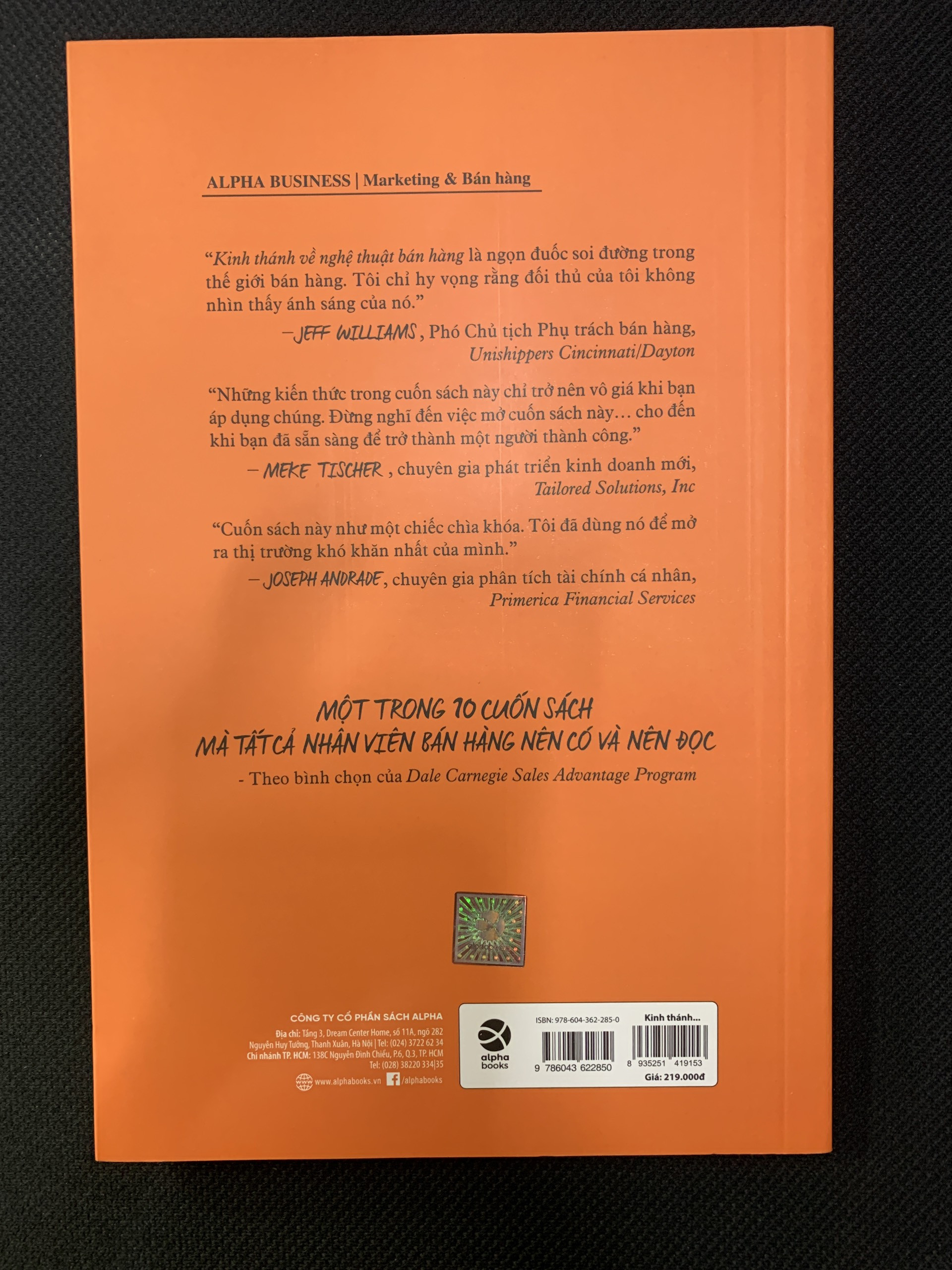 “Cho đến nay, Kinh thánh về Nghệ thuật Bán hàng của Jeffrey Gitomer vẫn chứa đựng những công cụ bán hàng hiệu quả nhất mà tôi đã từng thấy trong suốt 23 năm trong nghề của tôi. - Greg Gilis Công ty Thiết bị Loubat