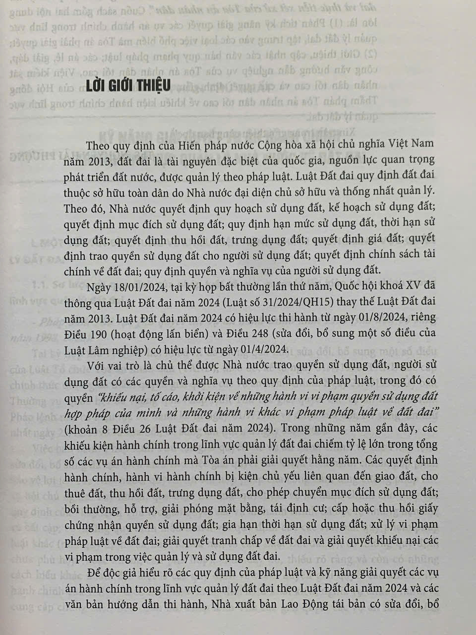 Chỉ Dẫn Áp Dụng Luật Đất Đai Năm 2024 & Kỹ Năng Giải Quyết Tranh Chấp Đất Đai Tại Tòa Án Tác giả: Luật sư Nguyễn Thị Ngọc Hà Nhà xuất bản: Lao Động Khổ