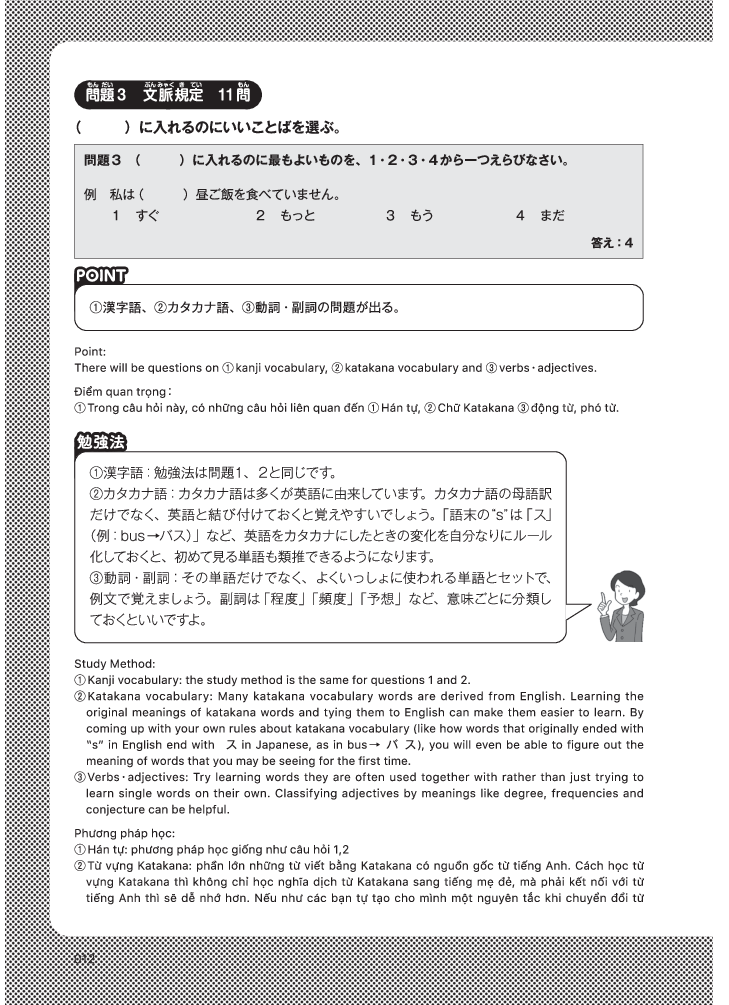 - Bao gồm 3 đề luyện thi Kỳ thi năng lực Nhật ngữ cấp độ N3.