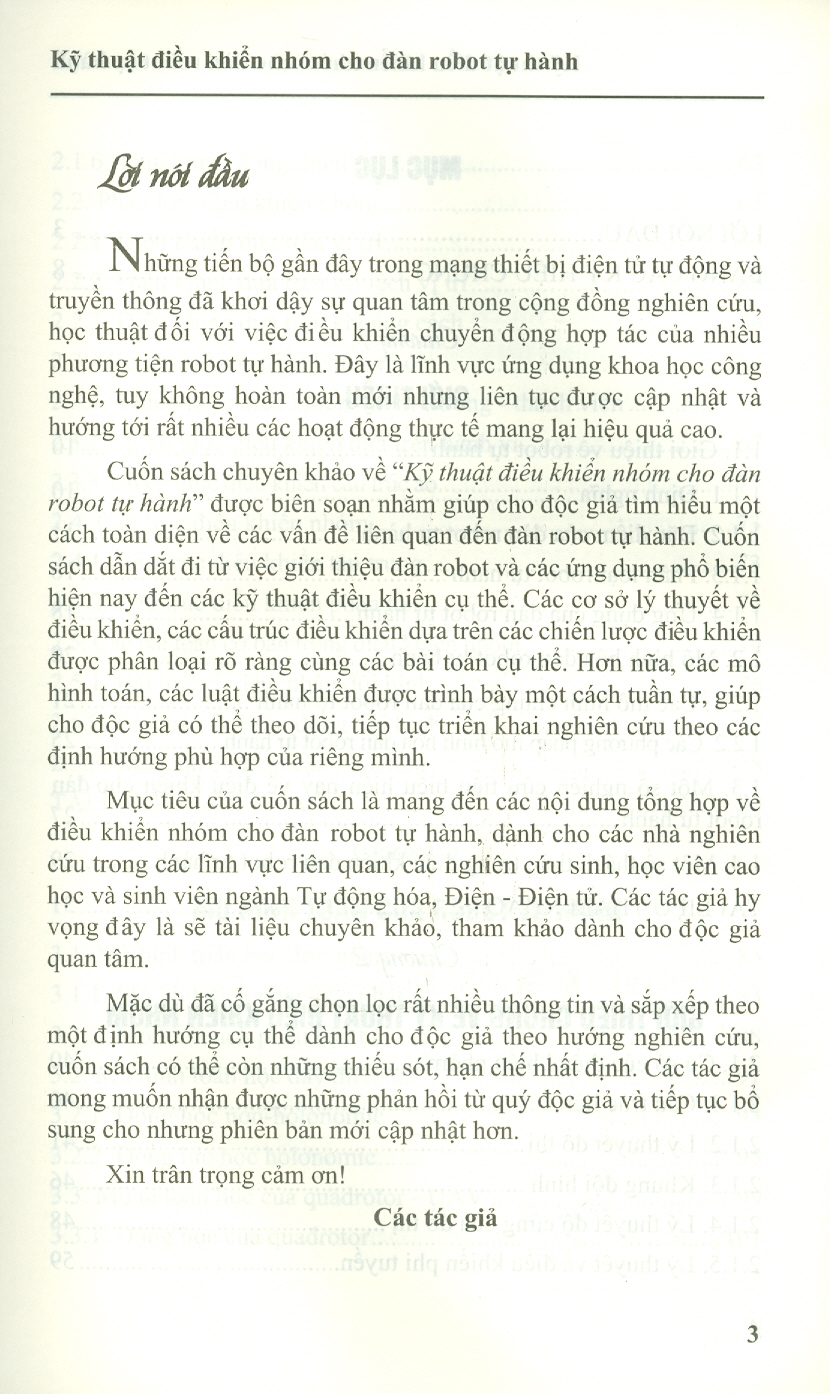 Cuốn sách chuyên khảo về " Kỹ thuật điều khiển nhóm cho đàn robot tự hành" được biên soạn nhằm giúp cho độc giả tìm hiểu một cách toàn diện về các vấn đề liên
