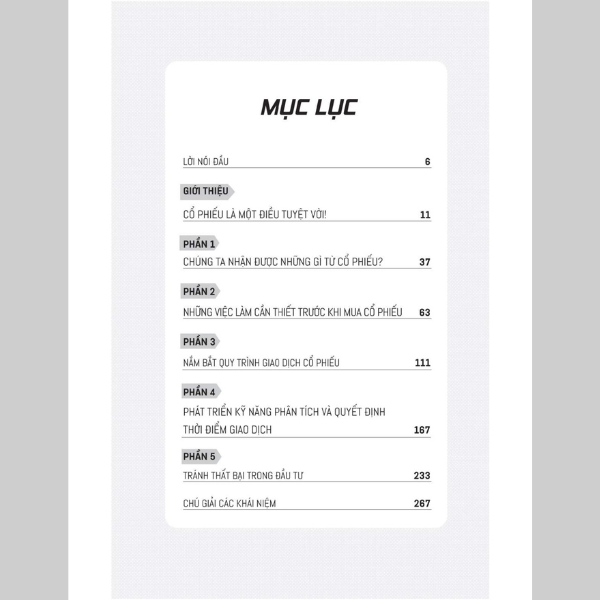 Cuốn sách giải thích mọi thứ - từ những điều cơ bản về lựa chọn tài khoản, lựa chọn mã cổ phiếu phù hợp đến những điểm then chốt khi tiến hành phân tích thị trường. Bạn sẽ được hướng dẫn về ý nghĩa của các chỉ số quan trọng, cách thực hiện phân tích cơ bản, phân tích kỹ thuật, đọc đồ thị hình nến… để tiến hành mua và bán cổ phiếu một cách kịp thời và hiệu quả, nhằm tối ưu lợi nhuận cũng như hạn chế tối đa các rủi ro trên thị trường.