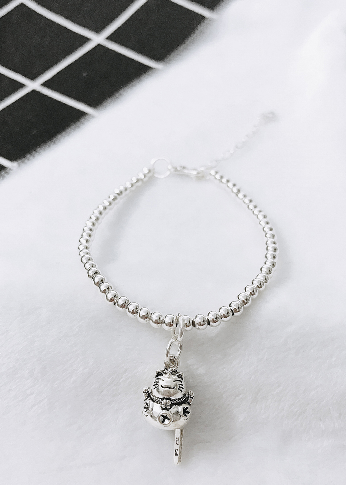 LẮC BI BẠC 3MM MÈO MAY MẮN