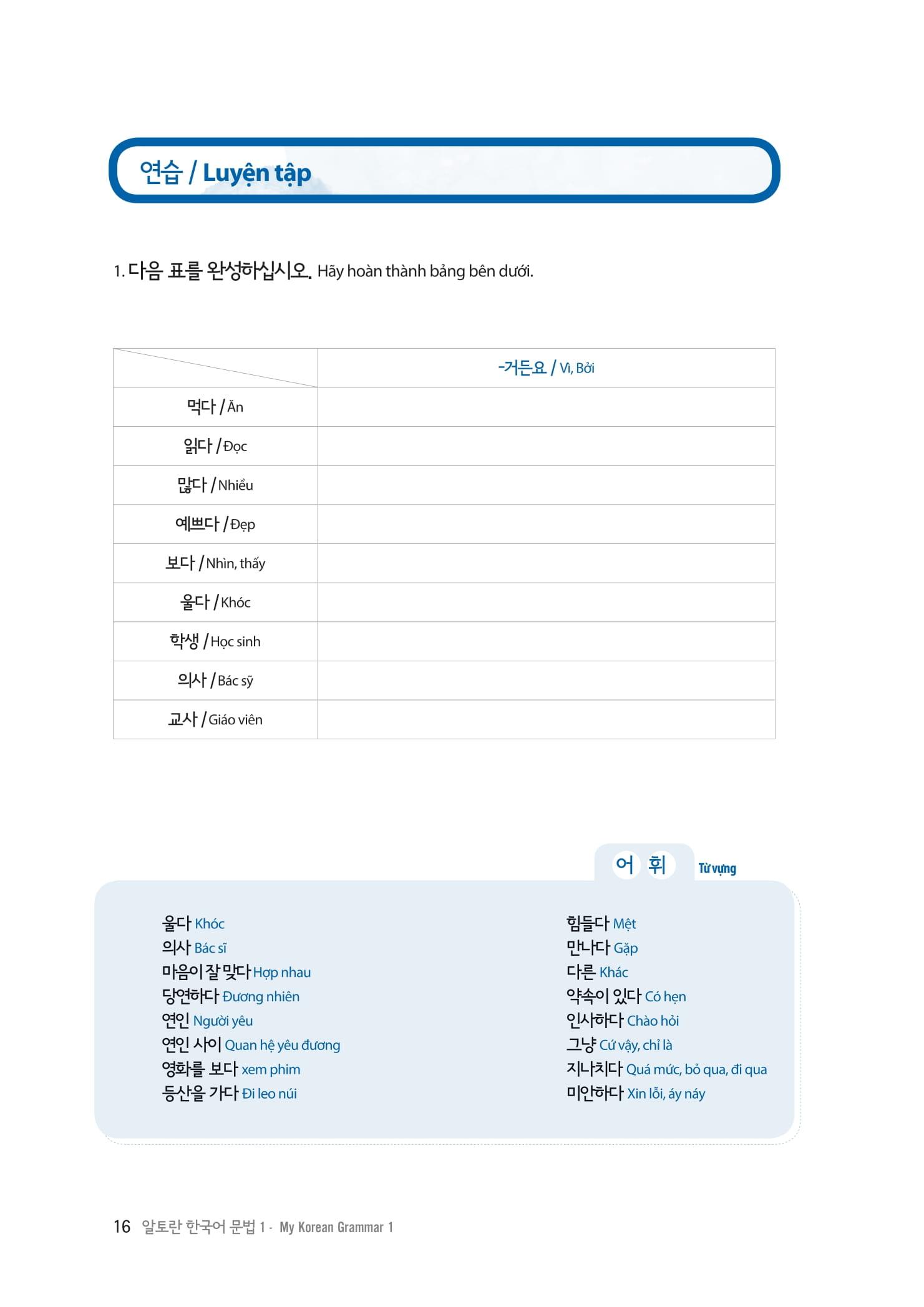 Tiếng Hàn Tổng Hợp Dành Cho Người Việt Nam - Sơ Cấp 1 - Sách Bài Tập Nếu bạn đã có trong tay cuốn Giáo trình tiếng Hàn tổng hợp dành cho người Việt Nam