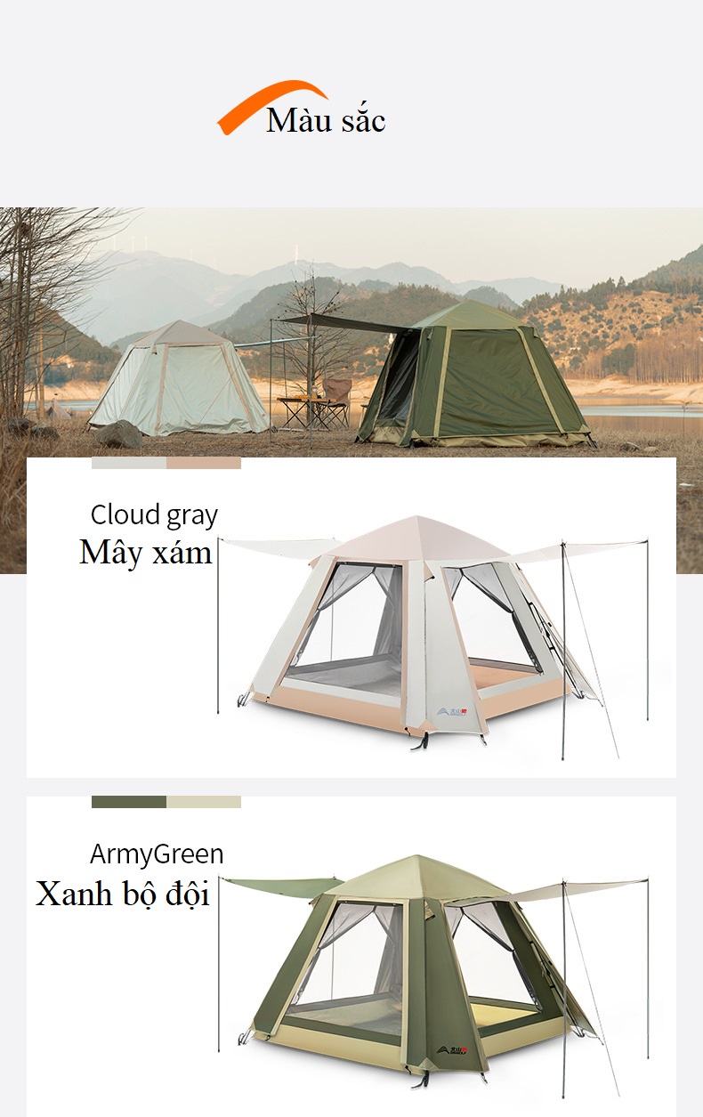 – Kích thước lều lớn, không gian rộng rãi thoải mái cho 4-6 người sử dụng.