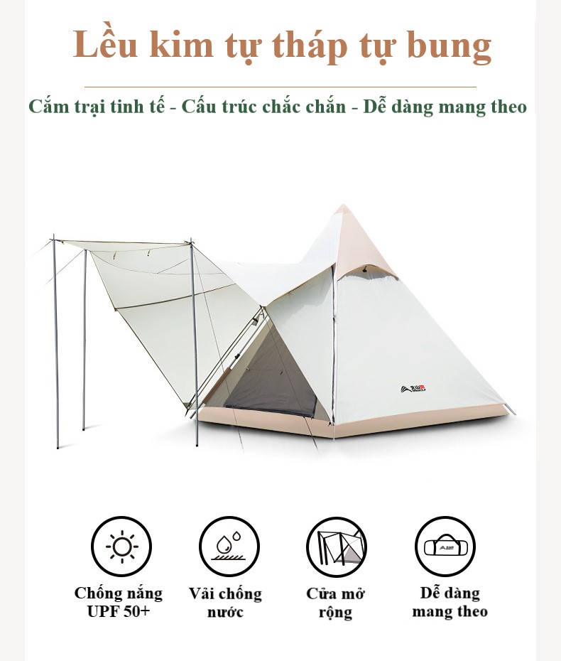 Giới Thiệu Về Sản Phẩm: - Vải lều chống nước cực tốt giúp bạn không bị ướt bởi cơn mưa, sương mù và bảo vệ bạn khỏi côn trùng cắn. Khung lều làm từ sợi