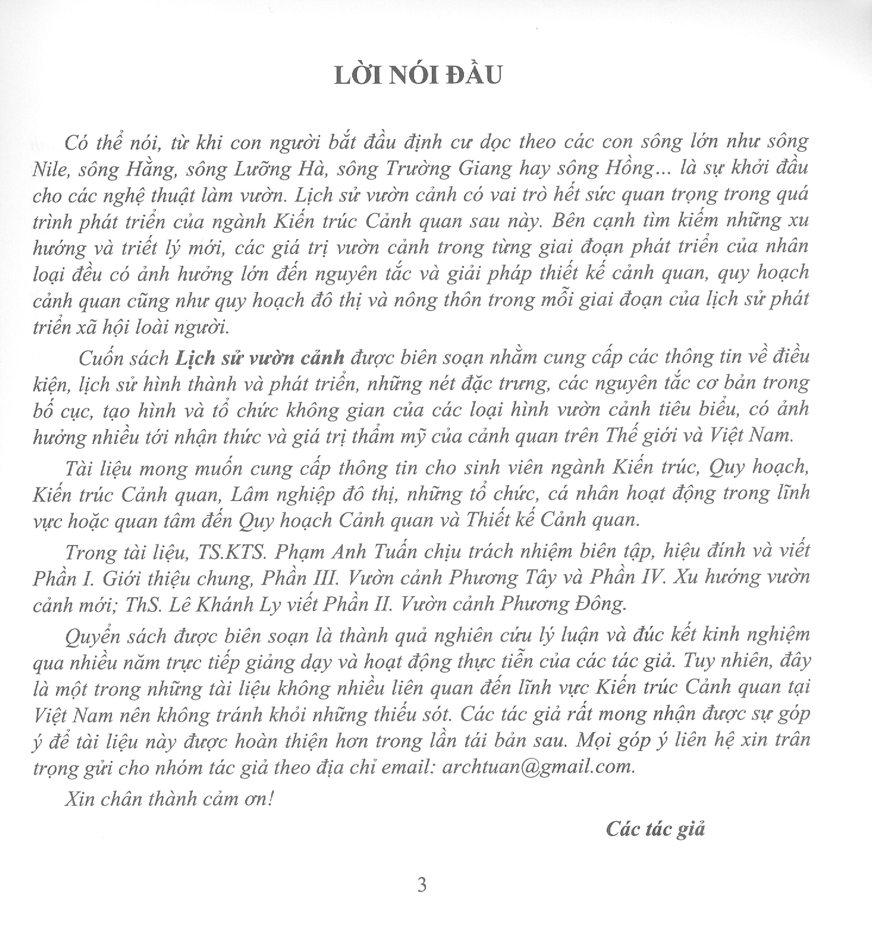 Tài liệu mong muốn cung cấp thông tin cho sinh viên ngành Kiến trúc, Quy hoạch, Kiến trúc Cảnh quan, Lâm nghiệp đô thị, những tổ chức, cá nhân hoạt động trong lĩnh vực hoặc quan tâm đến Quy hoạch Cảnh quan và Thiết kế Cảnh quan.