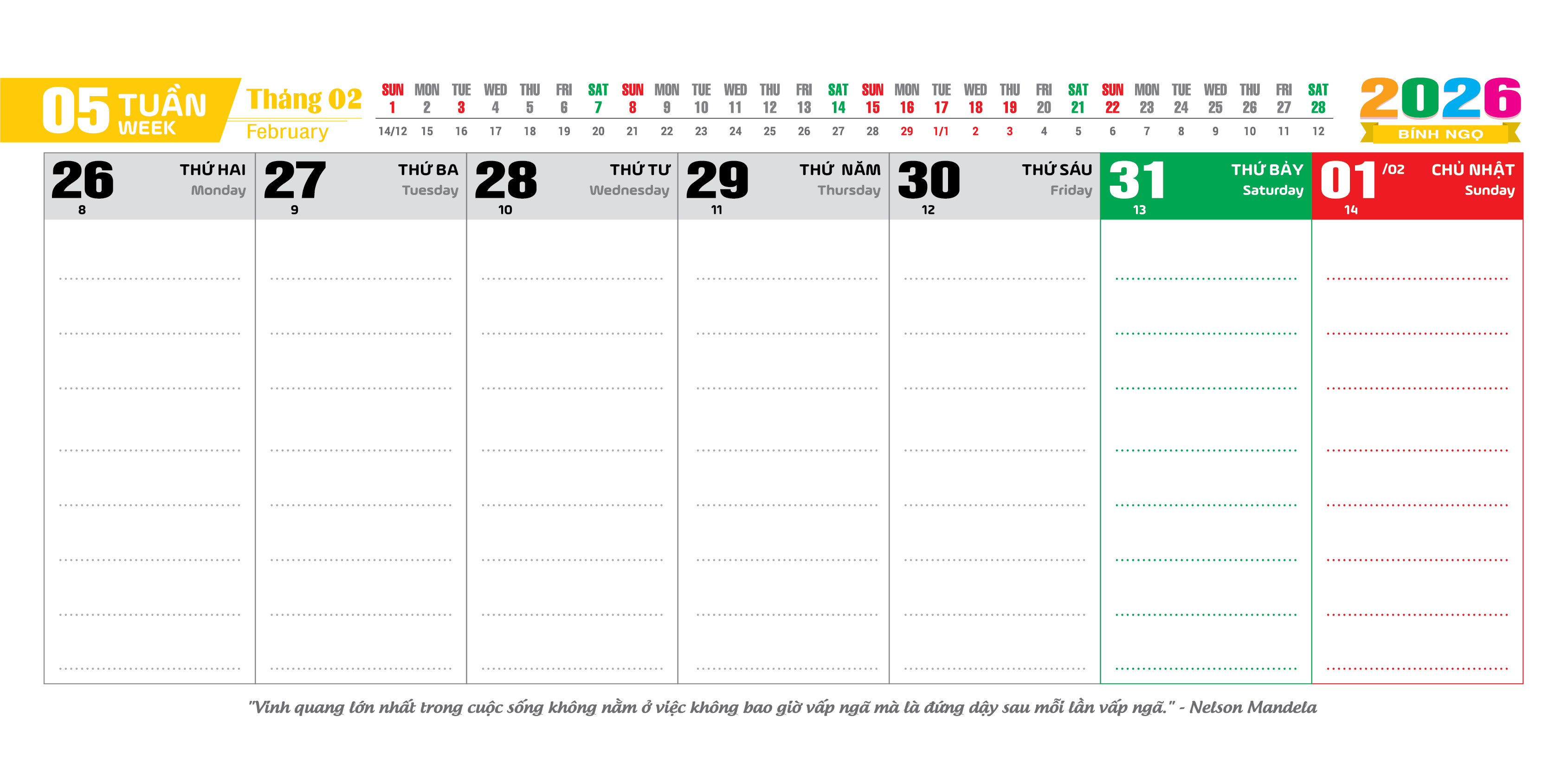 Lịch âm dương tháng 2 năm 2026 - Lịch vạn niên tháng 2/2026, Tết Bính Ngọ
