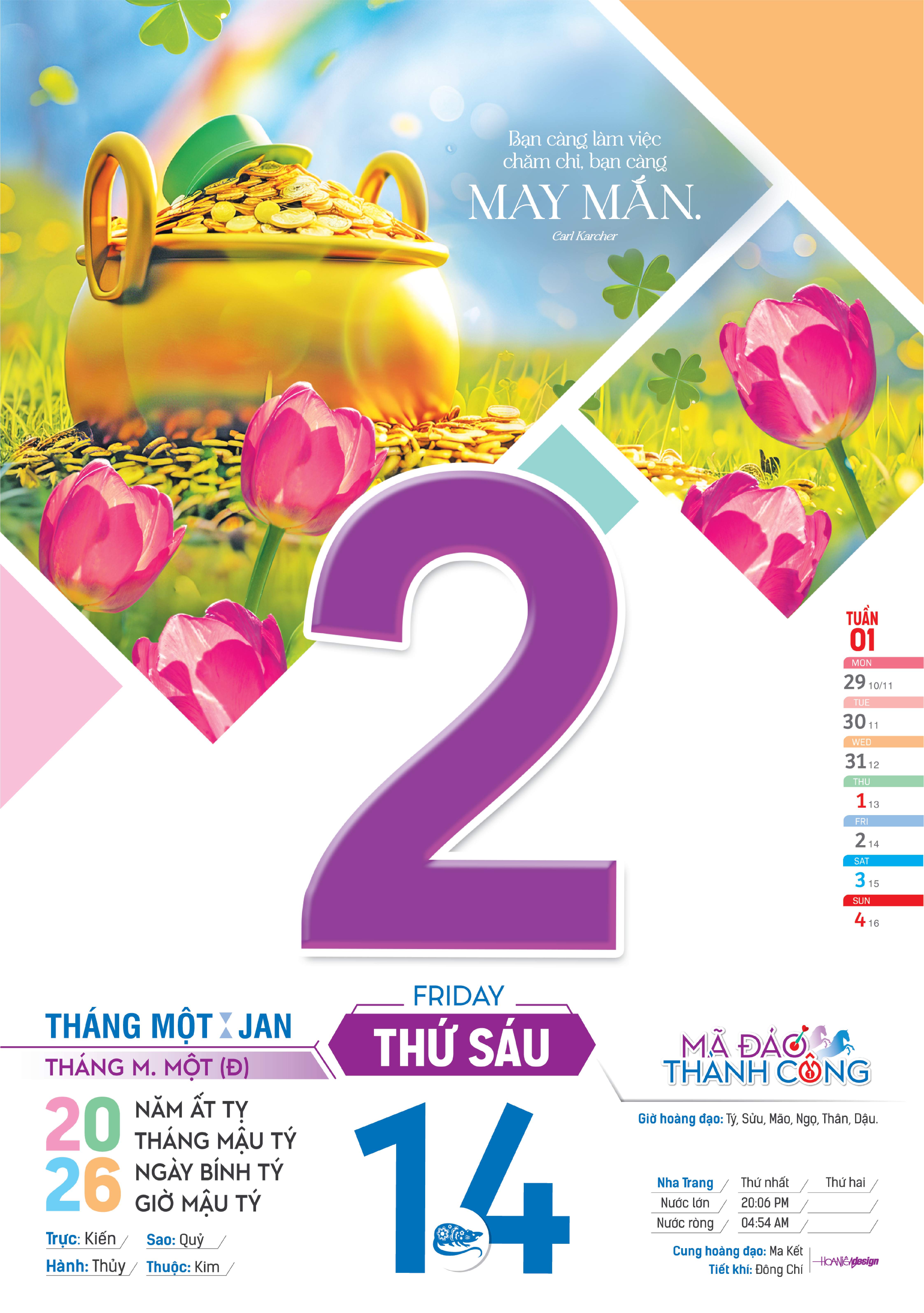 Lịch Bloc Siêu Cực Đại 2026 - Sắc Màu Thế Giới - Hạnh Phúc - Đại Việt Á DVA04B - Chữ Lộc - Lịch bloc giúp bạn nắm rõ ngày dương, ngày âm, tiết khí,