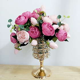 - Màu sắc đa dạng cho bạn lựa chọn: hồng đậm mix hồng phấn, hồng mix trắng, vàng, tím, trắng, tím mix vàng, tím mix trắng LƯU Ý: GIÁ SẢN PHẨM LÀ GIÁ 1 BÌNH kèm hoa đã bó sẵn bạn về thả vào bình chỉnh dáng theo mẫu ảnh Hoa mẫu đơn Châu âu là loại hoa lụa đẹp thiết kế tinh tế và tỉ mỉ tạo nên vẻ đẹp sang trọng Bình hoa đính pha lê màu ánh vàng lấp lánh được cắm cùng với hoa mẫu đơn được lựa chọn vô cùng độc đáo và sang trọng, với chiếc bình chân cao, đính đá giả làm cho không gian trang trí của bạn thêm sang trọng và ấn tượng hơn. Với màu sắc hoa tự nhiên, kiểu dáng bình sang trọng, là một lựa chọn hoàn hảo để bạn trang trí, decor nhà hàng, khách sạn, phòng khách sang trọng. Bạn có thể sử dụng bình hoa mẫu đơn để trang trí trong các buổi tiệc, party, sự kiện quan trọng, làm quà tặng bạn bè, người thân Lọ hoa thiết kế hình chiếc ly rỗng chỉ phù hợp cắm hoa lụa , hoa khô hoặc làm ly nến thơm decor