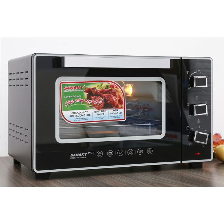 Mua tại TiktokVỏ ngoài thép sơn tĩnh điện Lò nướng Sanaky VH-3599N2D có vỏ ngoài bằng thép sơn tĩnh điện, mặt kính cường lực dày 2 lớp giữ nhiệt tốt; khoang lò bằng thép không gỉ bền tốt, dễ vệ sinh sau khi dùng. Công nghệ làm nóng bằng điện trở tối ưu. Quạt đối lưu Quạt đối lưu luân chuyển nhiệt lượng khắp khoang lò giúp làm món ăn chín đều hơn. Đèn trong khoang lò giúp bạn quan sát quá trình chế biến dễ dàng mà không cần phải mở cửa lò ra. Có xiên quay Nướng xiên quay linh hoạt giúp nướng gà, vịt nguyên con từ 2 kg trở lên dễ dàng, không sợ cháy khét.