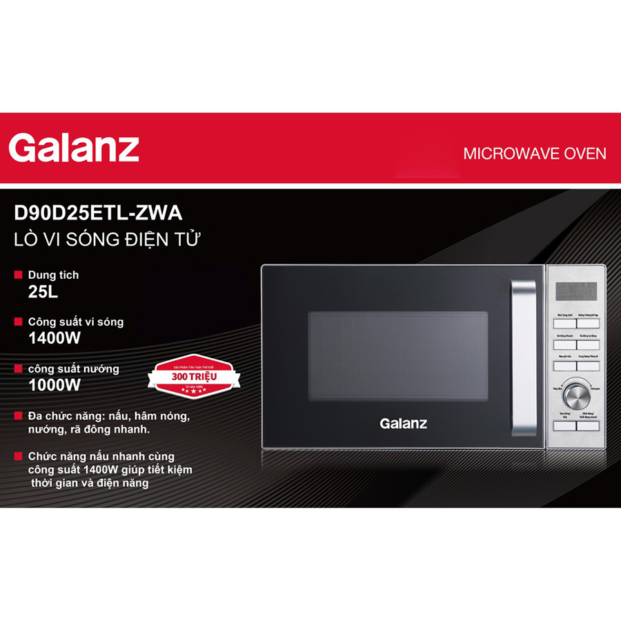 Lò vi sóng Galanz D90D25ETL-ZWA với các chế độ nhiệt khác nhau, có thể giúp bạn làm nóng mà không làm khô thực phẩm, không làm rút nước, giữ nguyên độ mềm dai và giá trị dinh dưỡng. Đặc biệt, lò có thể dùng để rã đông thực phẩm, đáp ứng gần như mọi nhu cầu của người sử dụng. Dung tích 25L đáp ứng tốt nhu cầu của gia đình 2 – 4 thành viên.