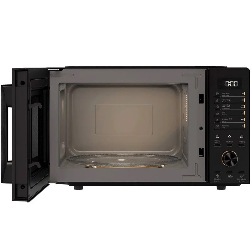 NỔI BẬT 5 cấp độ năng lượng vi sóng. 3 chương trình kết hợp tự động, 2 chương trình rã đông. Dung tích: 25 lít. Điều khiển bằng nút bấm và màn hình