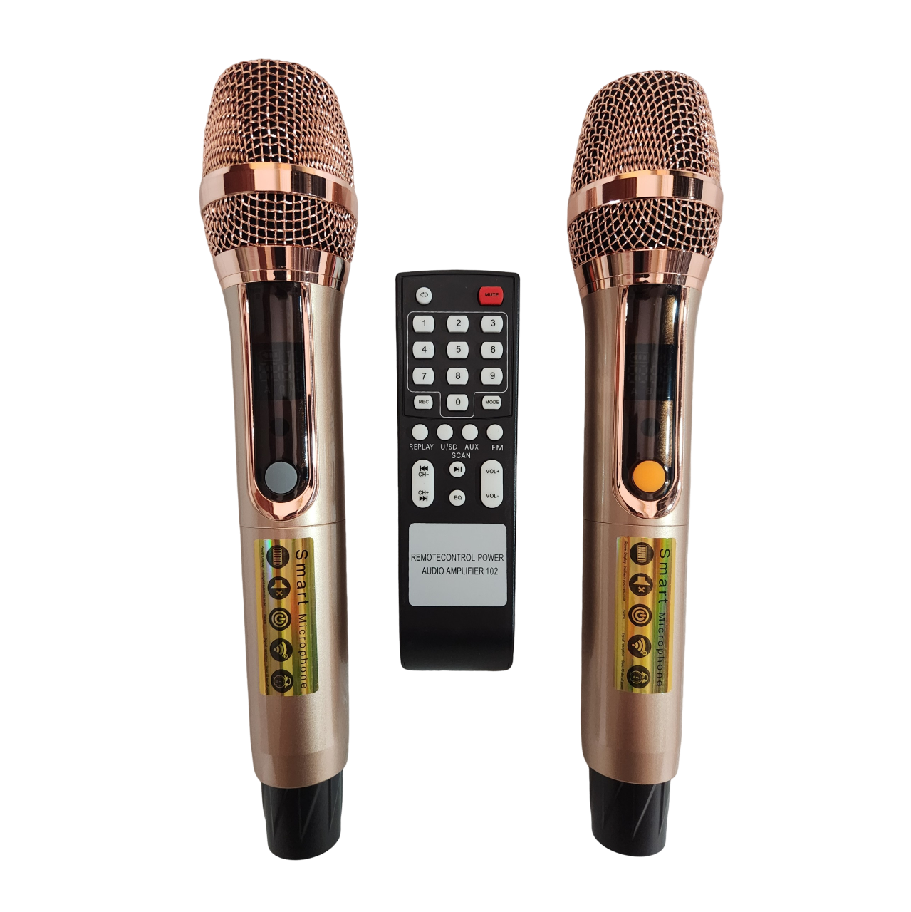 _Nguồn AC + DC _Hỗ trợ USB SD CARD Bluetooth Jack 3.5 _Phụ kiện 2 mic cầm tay không dây, adapter. remote _Công suất: 80Watts