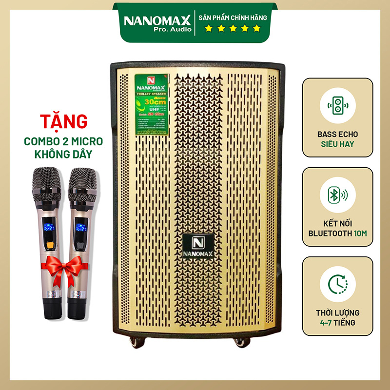 ✨Loa Kéo Karaoke Công Suất Lớn Nanomax SK-12X2 Tặng Kèm 2 Micro Không Dây Kết Nối Bluetooth Đọc Được Usb Thẻ Nhớ Hàng Chính Hãng