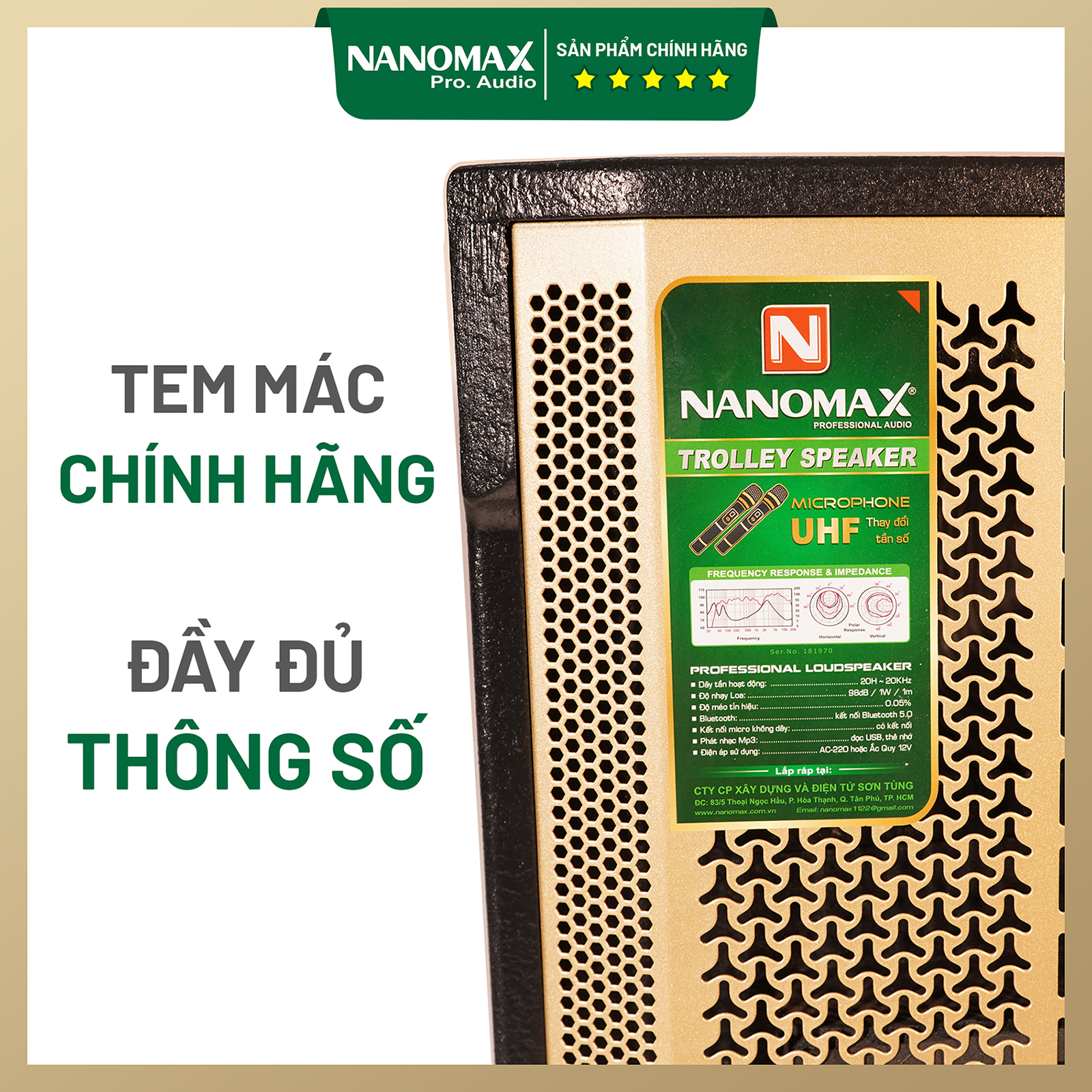 Loa Kéo Nanomax SK-0209 Bass 40cm (4 Tấc) Công Suất 650w Hát Karaoke Bluetooth Bao Xa Tặng 2 Micro Không Dây Tùy Chỉnh Tần Số UHF Và 4 Pin AA. THÔNG SỐ LOA KÉO NANOMAX