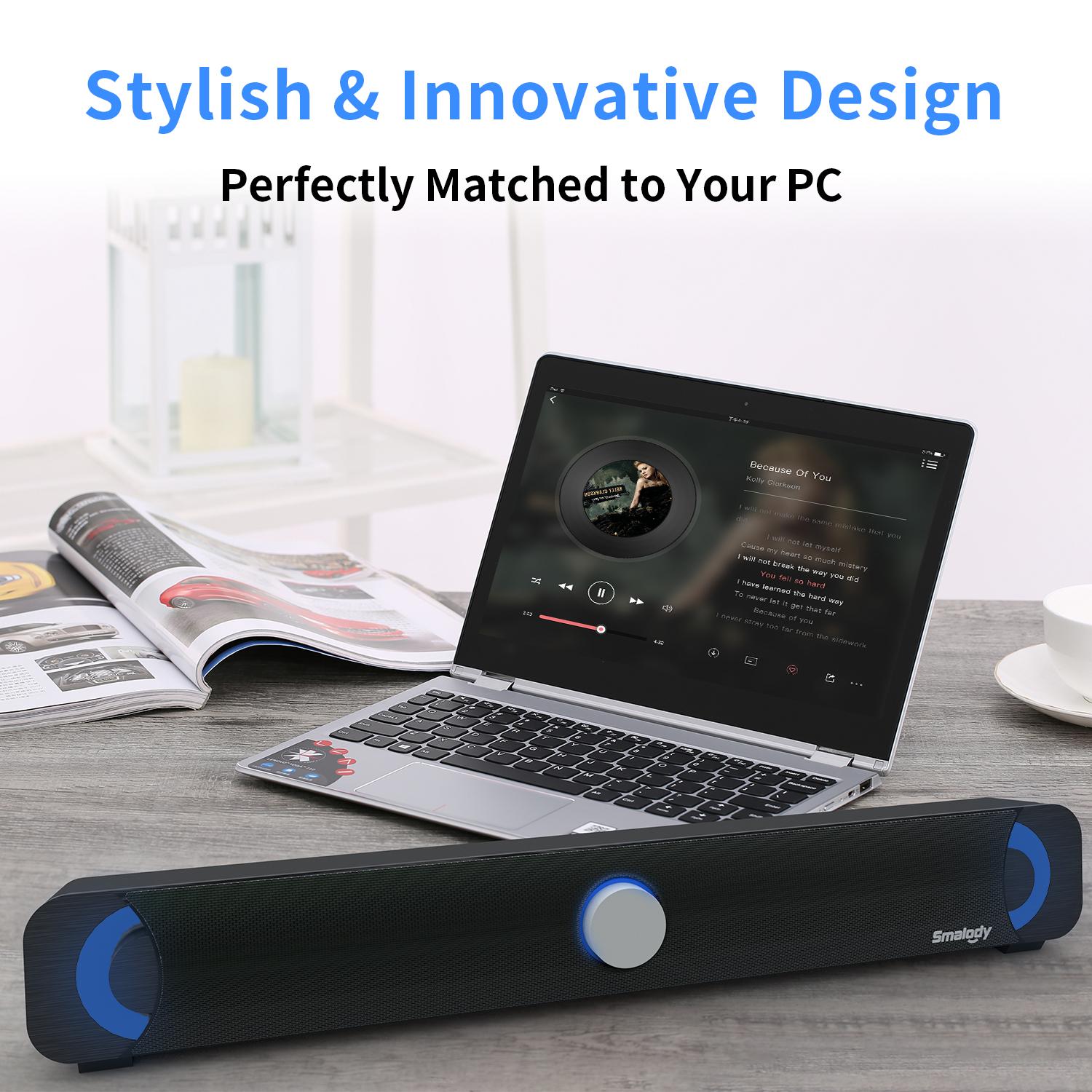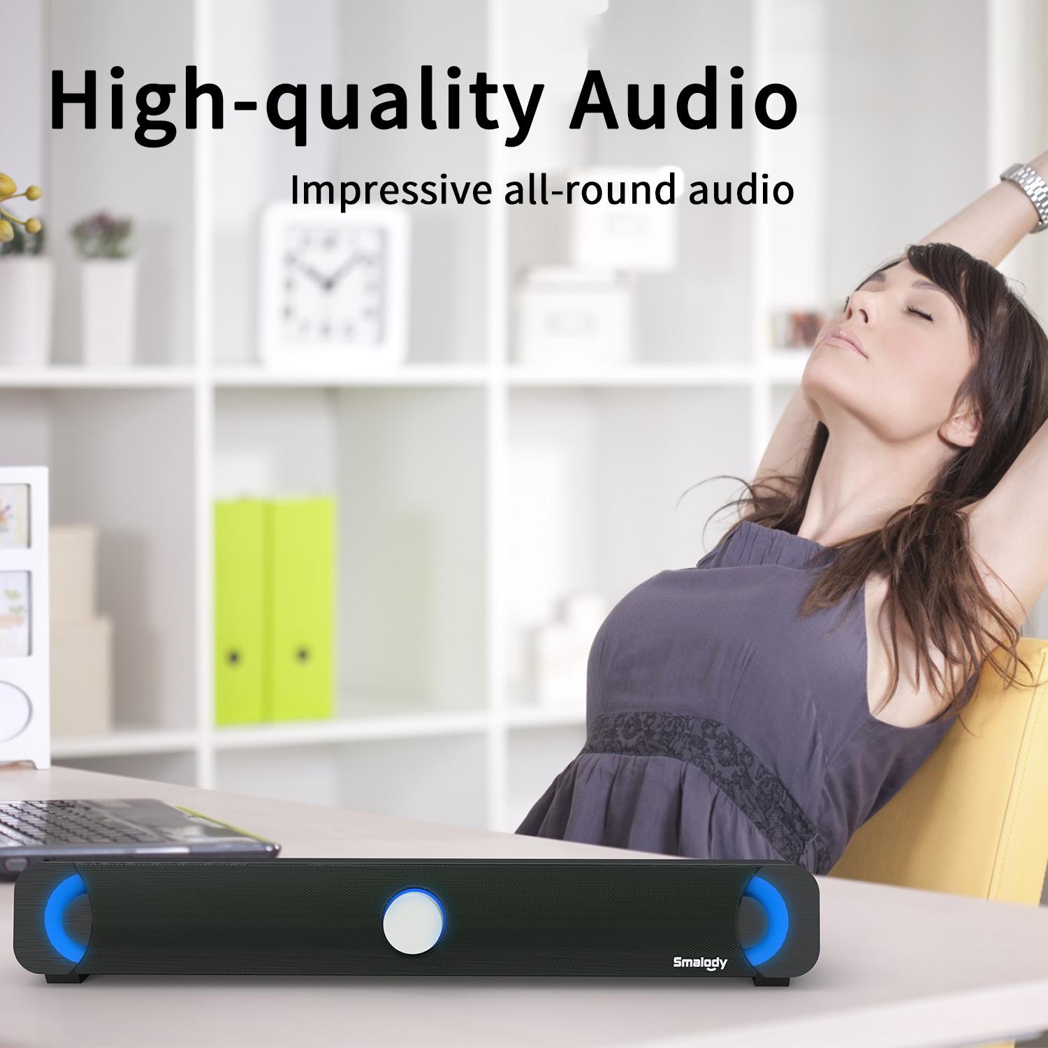 Overview: If you are finding a characteristic soundbar, this product is your dreaming item. Sound Bar uses unique noise reduction technology to equip your computer with high-quality full-range speakers. It is loud and clear, with
