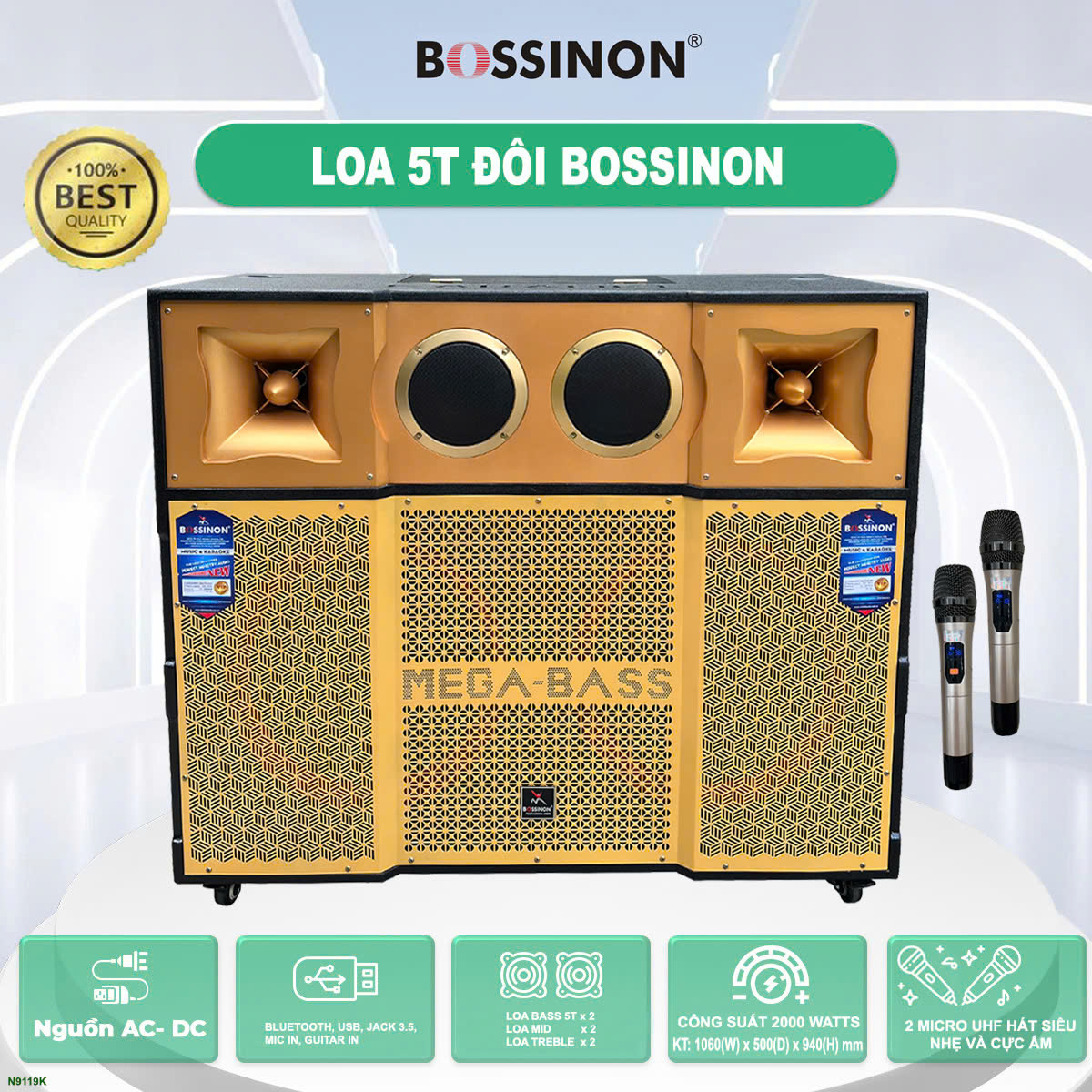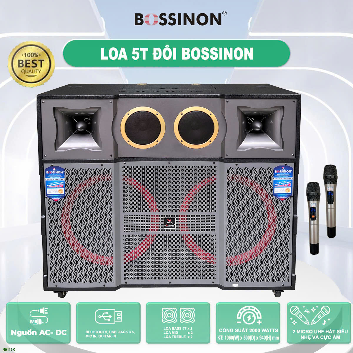 LOA KÉO TỦ 5T ĐÔI BOSSINON N9119K - CÔNG SUẤT 2000W