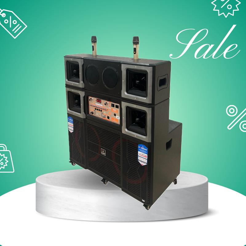 _Nguồn AC, Nguồn DC _Hỗ trợ Bluetooth, guitar in, mic in, USB, Jack 3.5... _Bass loa ≈40cm X 2 _ treble x 4 ++ Kết hợp 4 loa mid _Phụ kiện 2 mic cầm tay