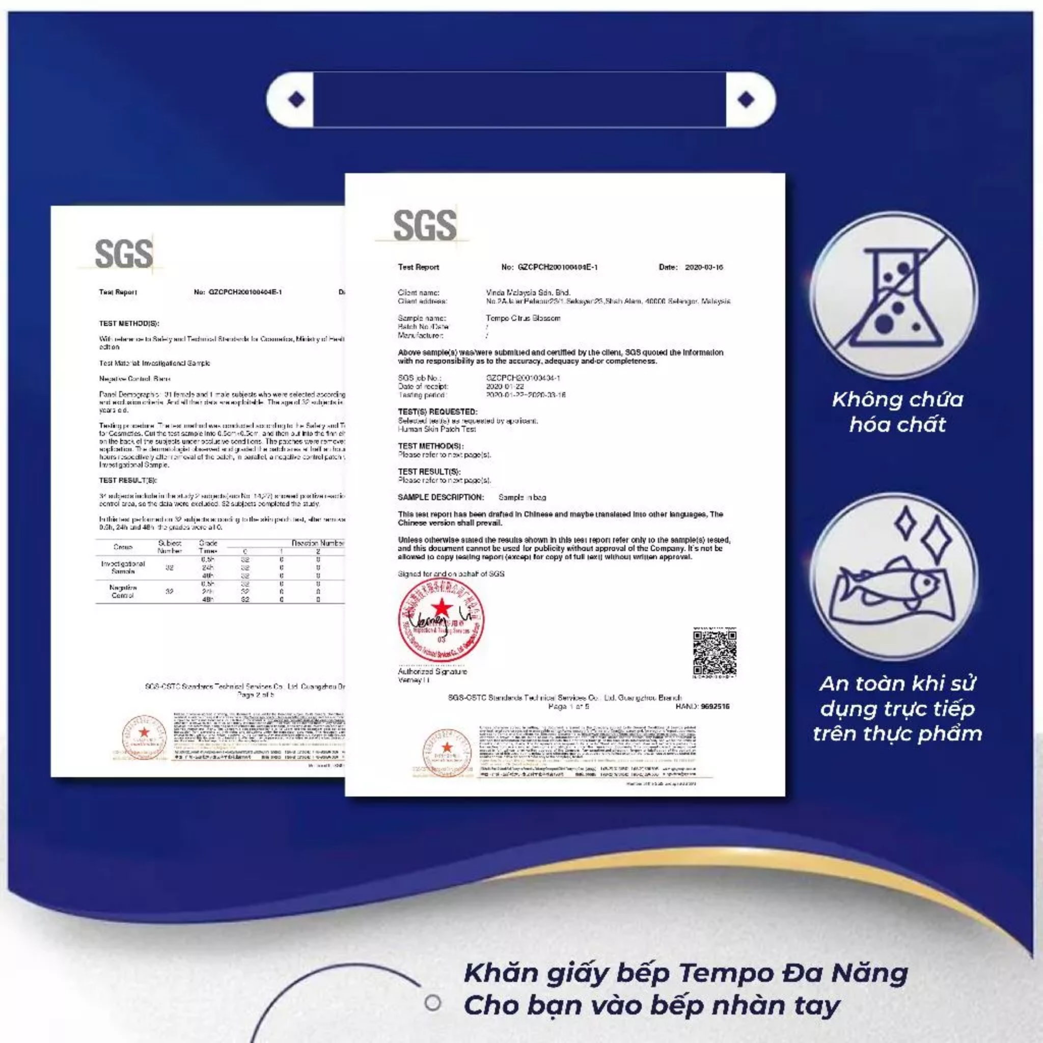 - Khăn Giấy Tempo được cấu thành từ bột giấy và hương liệu, không chứa hóa chất độc hại, tuyệt đối an toàn cho người sử dụng. - Sản phẩm có thể dùng lau mặt hoặc