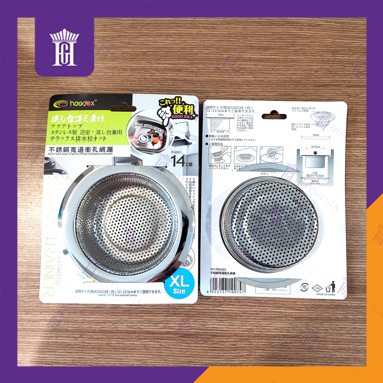 Lọc rác inox hiệu Hoàng Gia Haodex size XL 14cm hiệu quả cao ngăn giữ rác các loại chống tắc nghẽn đường ống chậu rửa bát.