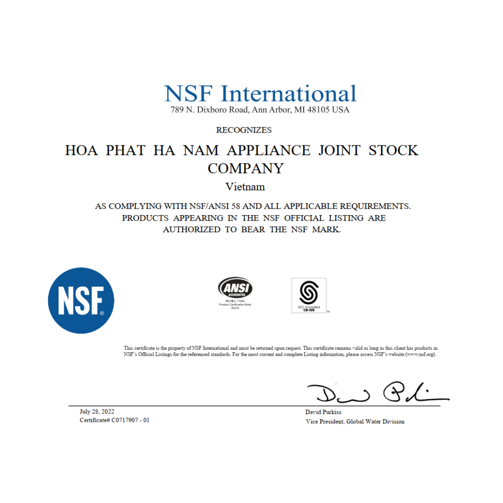 - Thời gian khuyến nghị thay màng lọc RO: 24 - 36 tháng
