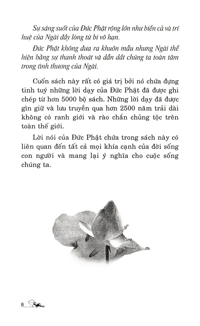Cuốn sách này chứa đựng tinh túy những lời dạy của Đức Phật đã được ghi chép hàng ngàn bộ kinh. Những lời dạy này đã được gìn giữ và lưu truyền qua hơn 2500 năm, vượt qua mọi ranh giới và rào chắn, không gian và thời gian.