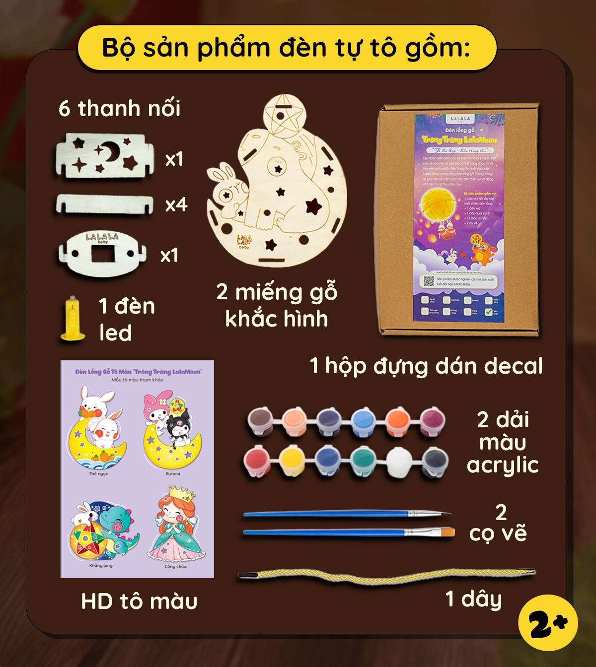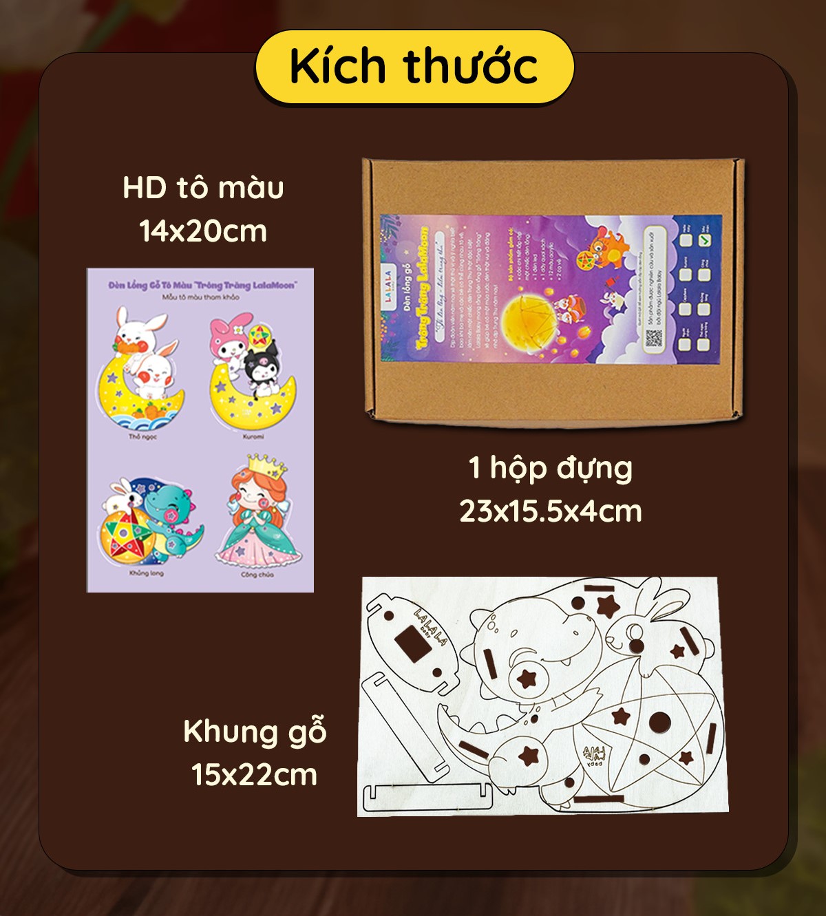 Thông tin sản phẩm:Đèn lồng gỗ Lalamoon trung thu bộ kit tự làm đèn Trông trăng tự do sáng tạo Lalala baby