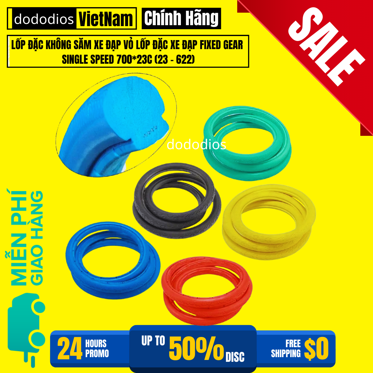 Lốp Đặc Không Săm Xe Đạp Chọn Màu – Vỏ Lốp Đặc Xe Đạp Fixed Gear Single Speed 700*23C (23 - 622) Chính Hãng dododios Lốp Đặc Không Săm Xe Đạp Chọn Màu – Vỏ