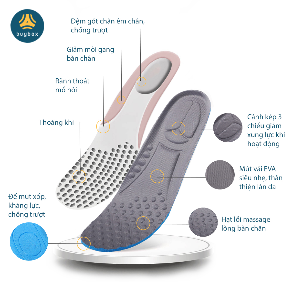 ✨Lót giày thể thao có hạt massage lòng bàn chân, thoáng khí, chất liệu mềm mại dễ dàng vận động - Buybox - BBPK228