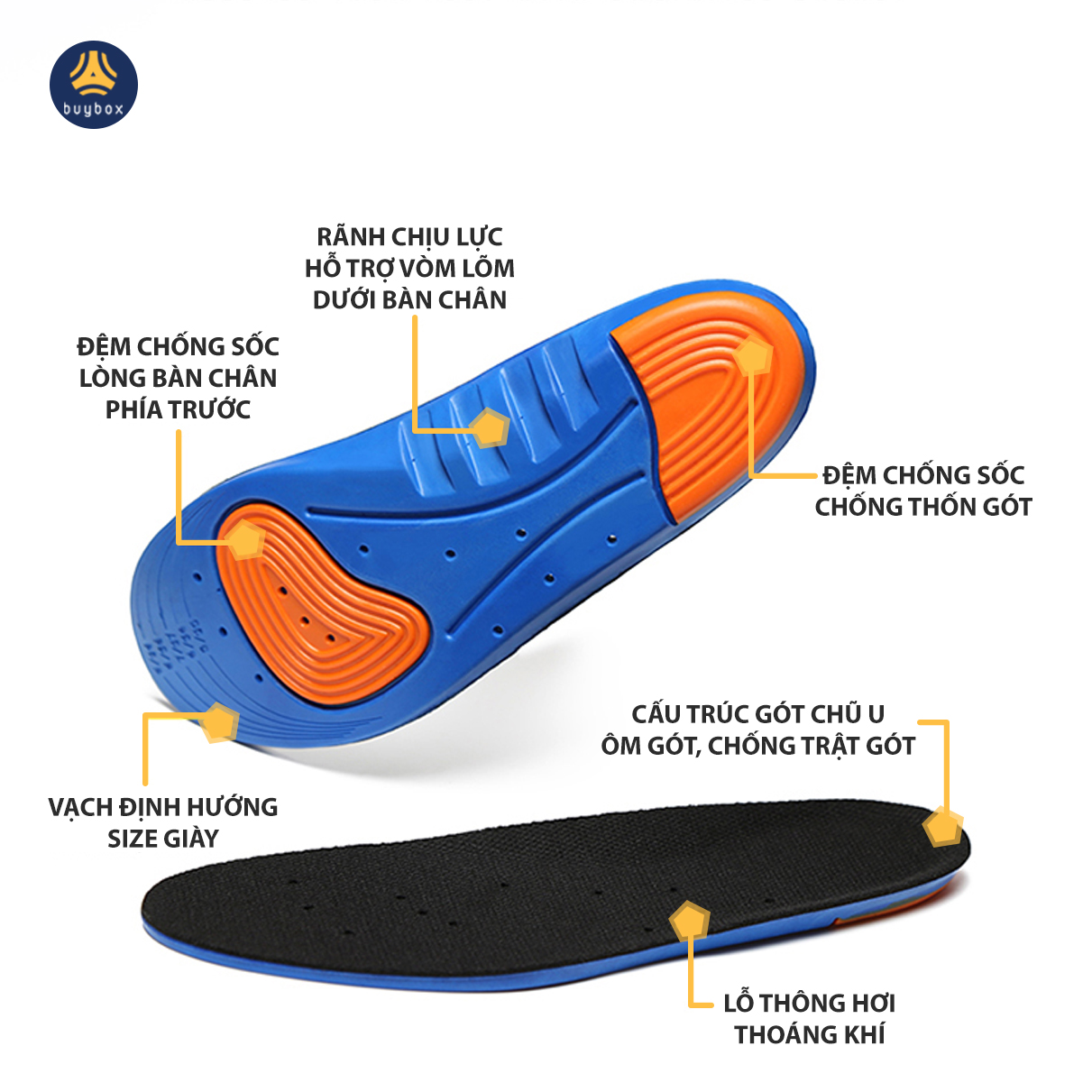 Lót giày thể thao EVA chống thốn gót, giảm mỏi gang bàn chân.