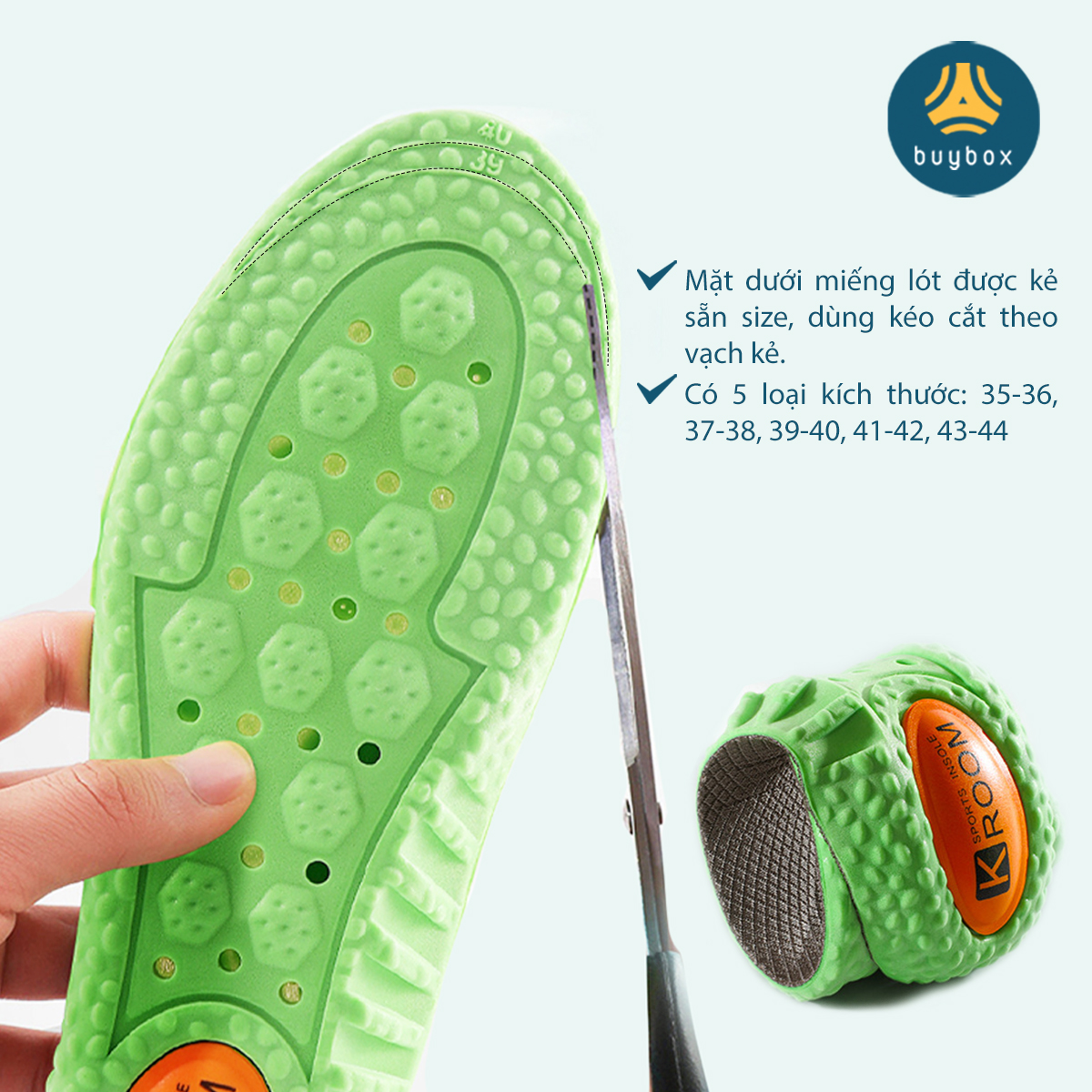- Lót giày siêu nhẹ không ảnh hưởng trọng lượng giày khi mang cùng. THÔNG TIN SẢN PHẨM Quy cách: 1 cặp 2 miếng dùng cho 1 đôi giày Chất liệu: Bọt silicone, vải mesh Kích thước: 35-36, 37-38, 39-40, 41-42, 43-44, DÙNG KÉO CẮT THEO VẠCH SIZE IN TẠI MẶT DƯỚI ĐỂ CÓ SIZE CẦN SỬ DỤNG. Màu sắc: chỉ có 1 màu be