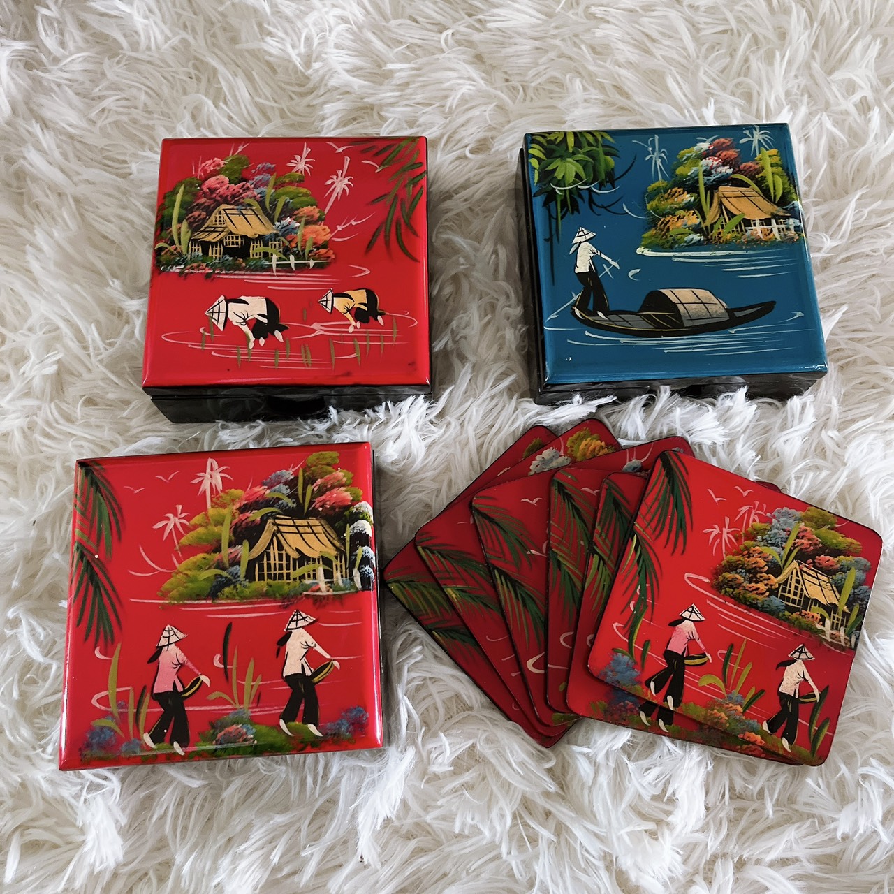 Hộp lót ly sơn mài cao cấp, là hàng thủ công mỹ nghệ độc đáo bởi từ khâu nguyên liệu được người nghệ sĩ làm rất tỉ mỉ và công phu, cho đến khi hoàn thành sản phẩm
