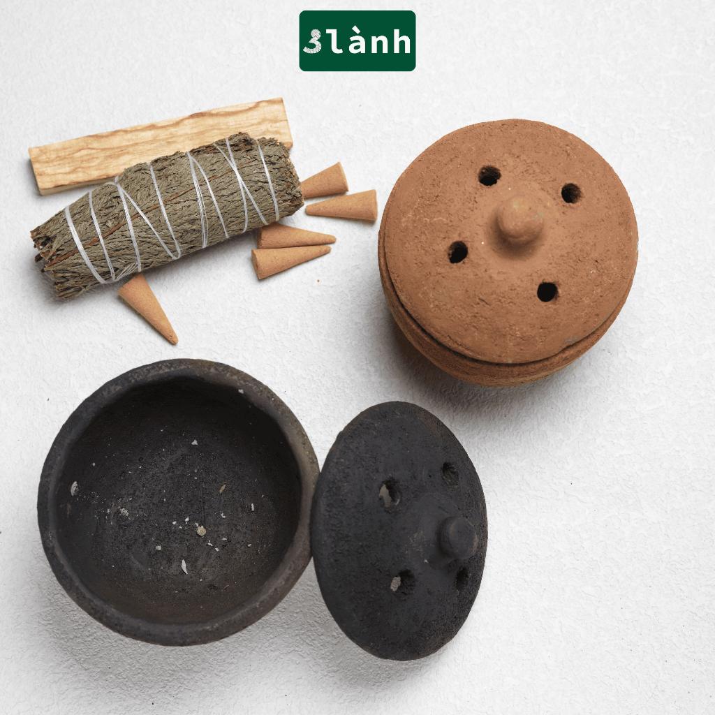 ✨Lư Xông Thủ Công Chăm Bằng Đất Sét 3 Lành - Dùng Đốt Nụ Trầm, Nụ Thảo Mộc, Bó Xông, Gỗ Thánh - Phong Cách Thuần Việt