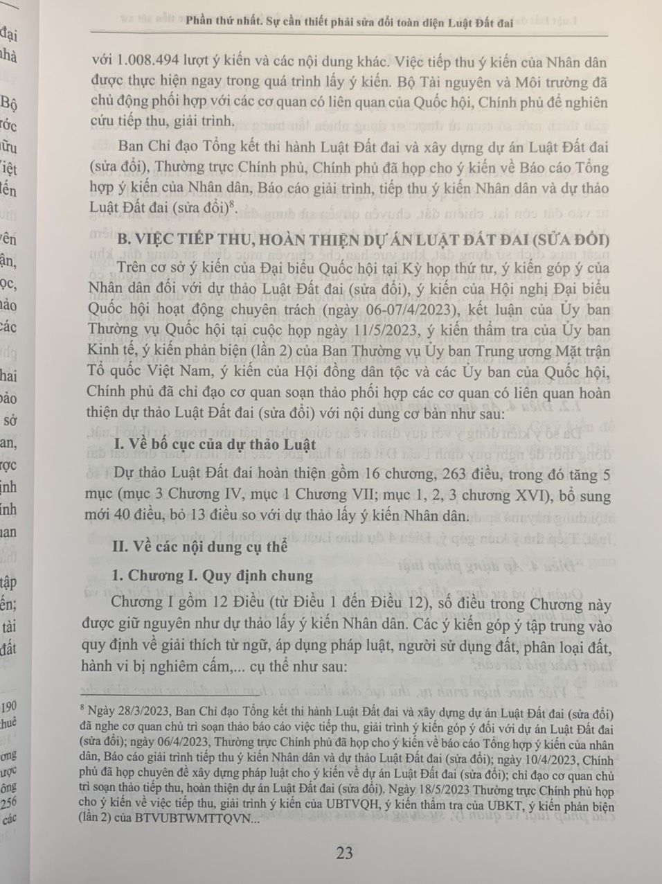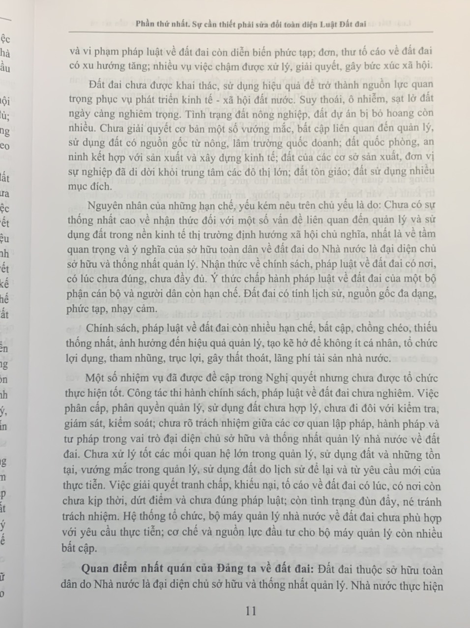 Ngày 18/01/2024, Quốc hội nước Cộng hòa xã hội chủ nghĩa Việt Nam thông qua Luật Đất đai số 31/2024/QH15, đã thể chế hóa đầy đủ, kịp thời các quan điểm, chủ trương của Đảng