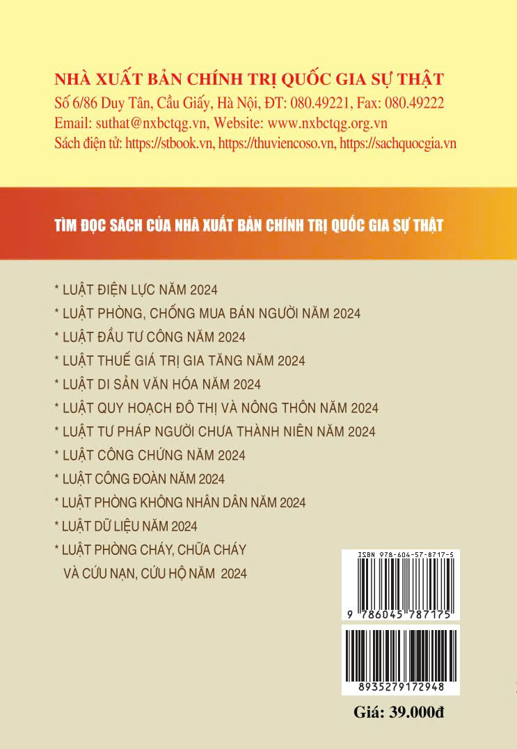 Nhằm đáp ứng nhu cầu của bạn đọc trong việc nghiên cứu, tìm hiểu, áp dụng pháp luật một cách thuận tiện, đầy đủ và thống nhất, Nhà xuất bản Chính trị quốc gia Sự