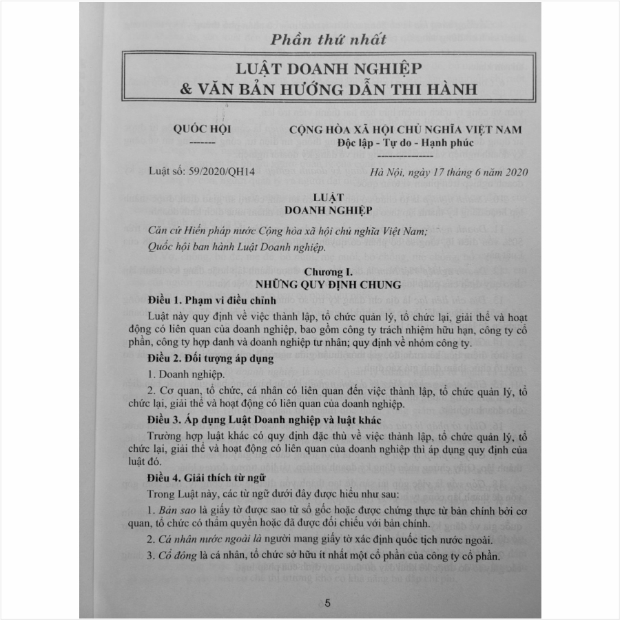 Luật doanh nghiệp số 59/2020/QH14 thông qua ngày 17/06/2020, có hiệu lực thi hành từ ngày 01/01/2021 Song ngữ Việt - Anh
