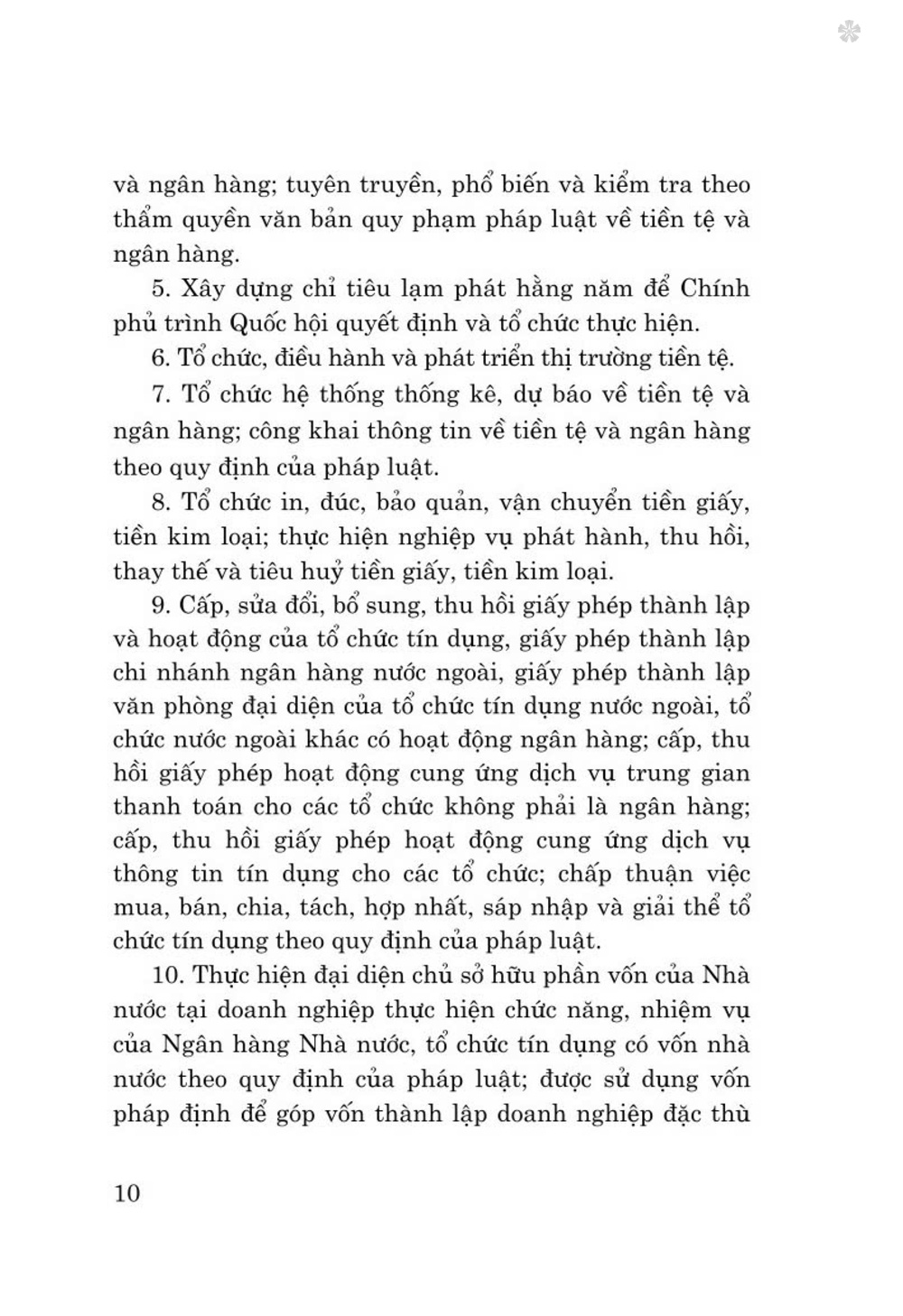 Nội dung cuốn sách là văn bản luật được hợp nhất giữa Luật Ngân hàng Nhà nước Việt Nam năm 2010 và phần nội dung được sửa đổi, bổ sung trong Luật Phòng, chống rửa tiền năm 2022.