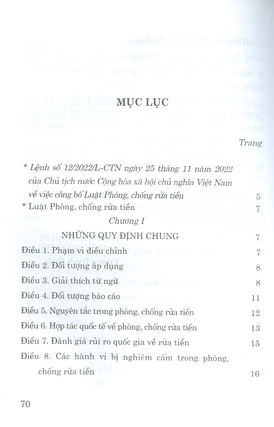 Luật Phòng Chống Rửa Tiền 2022 - Chương 1. NHỮNG QUY ĐỊNH CHUNG (Điều 1-8)