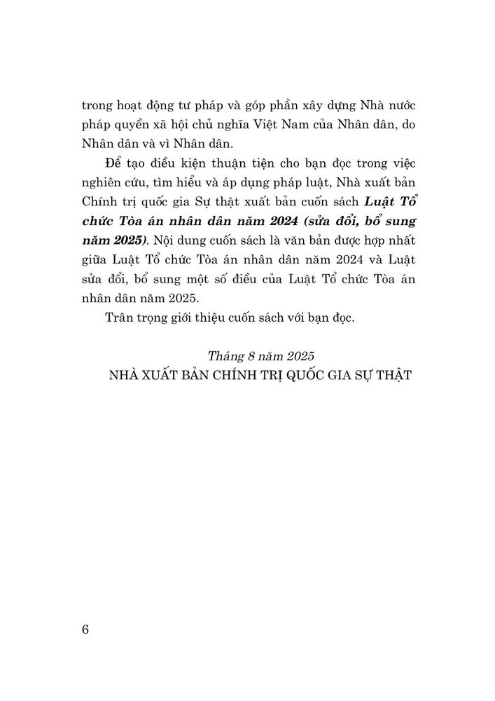 Luật Tổ chức Tòa án nhân dân năm 2024 (sửa đổi, bổ sung năm 2025) Khổ sách 13x19 Năm xuất bản 2025