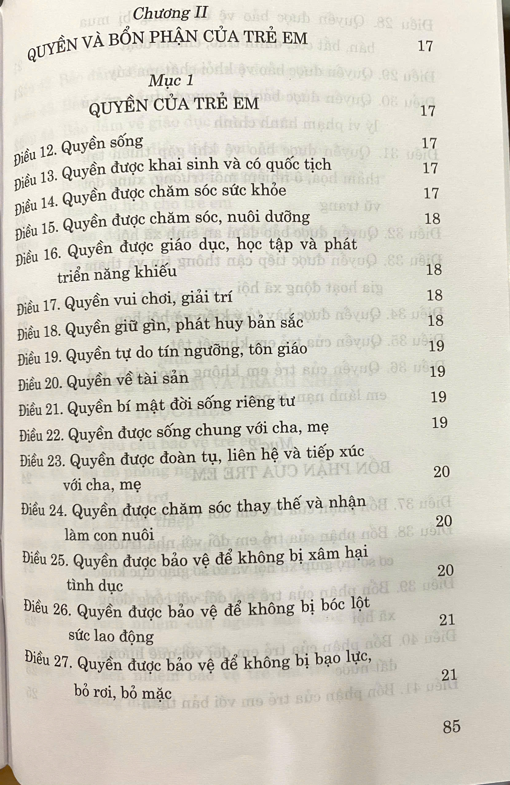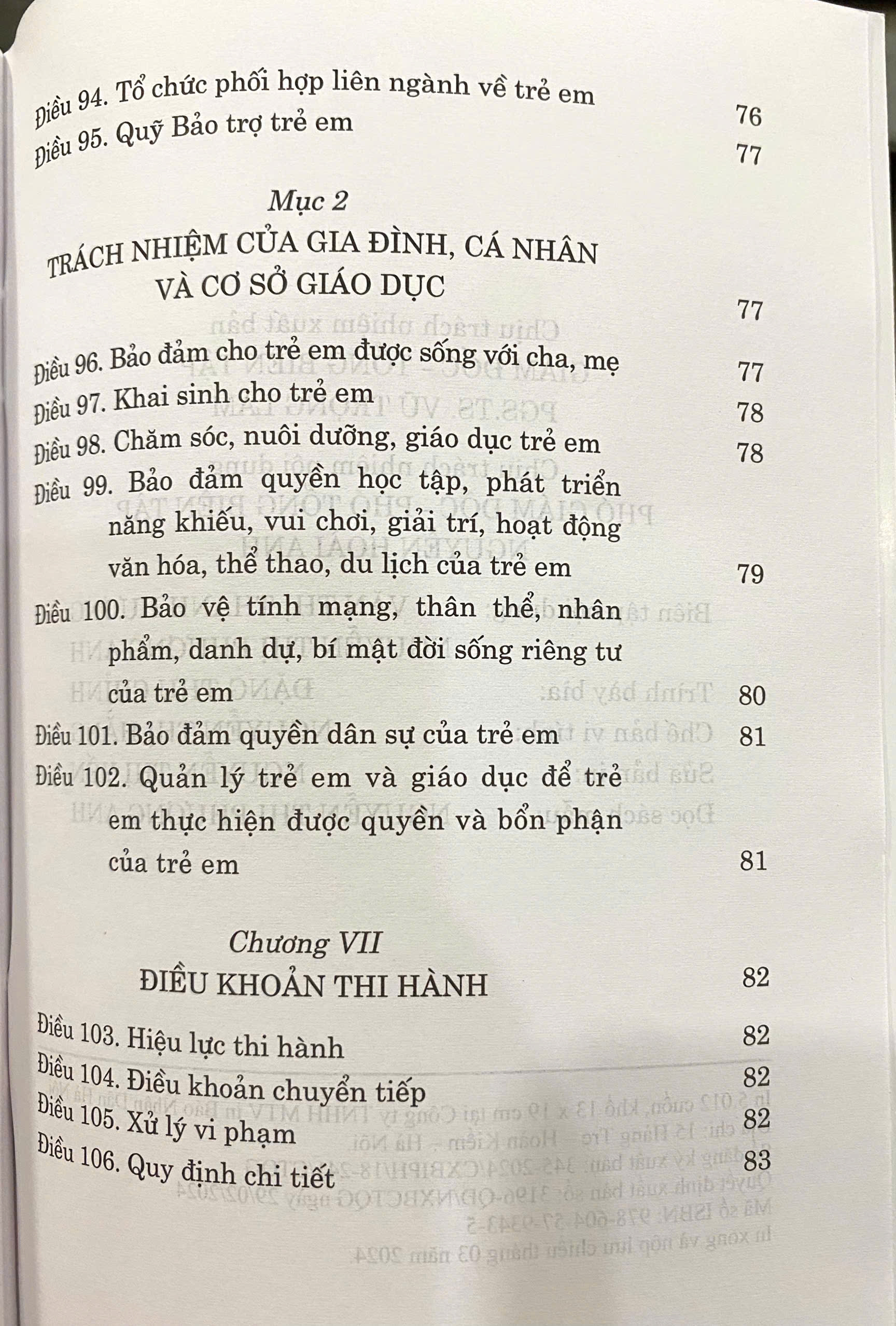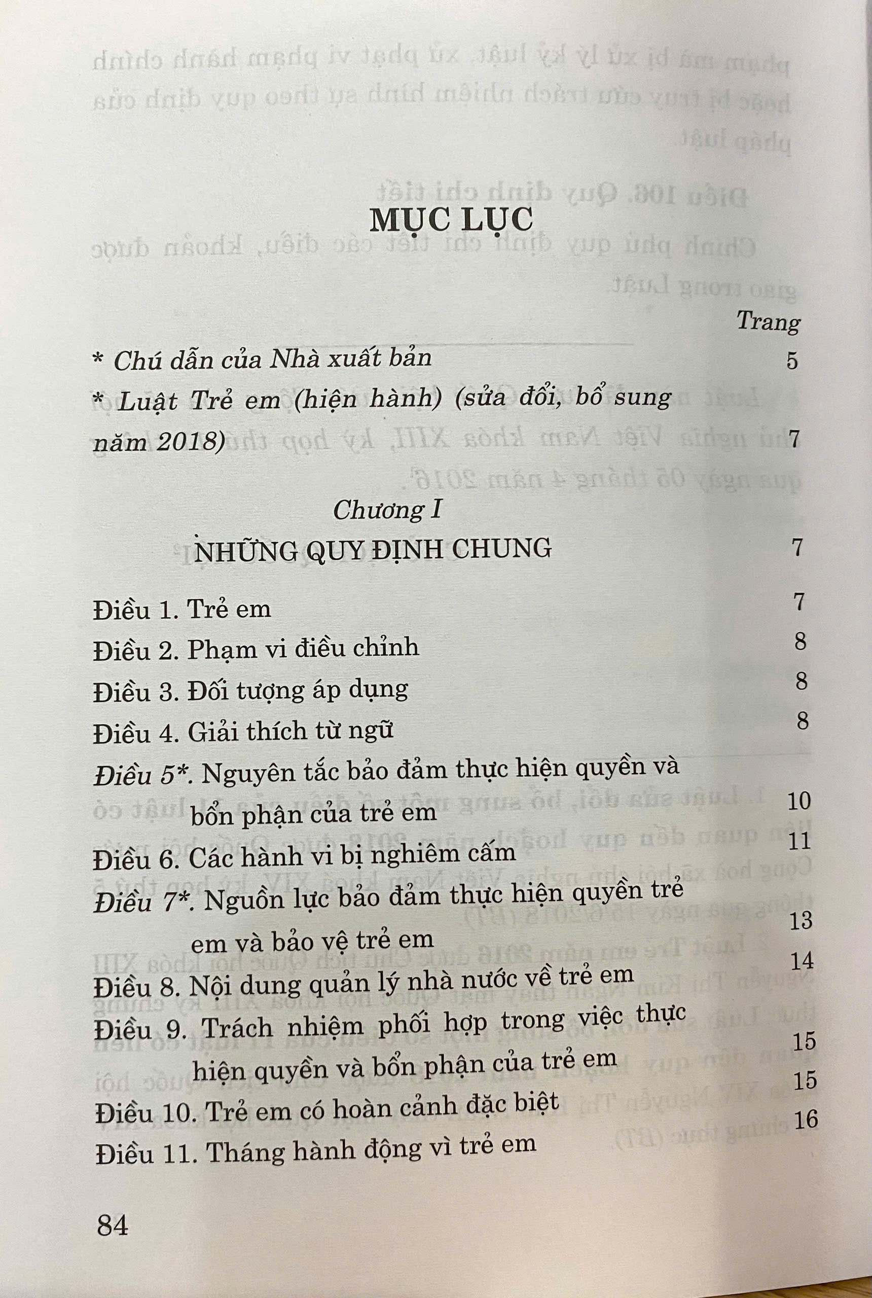 Luật Trẻ Em ( Hiện hành ) ( Sửa đổi, bổ sung năm 2018) luật gồm có 7 chương, 106 điều. Luật có hiệu lực thi hành từ ngày 01-06-2017