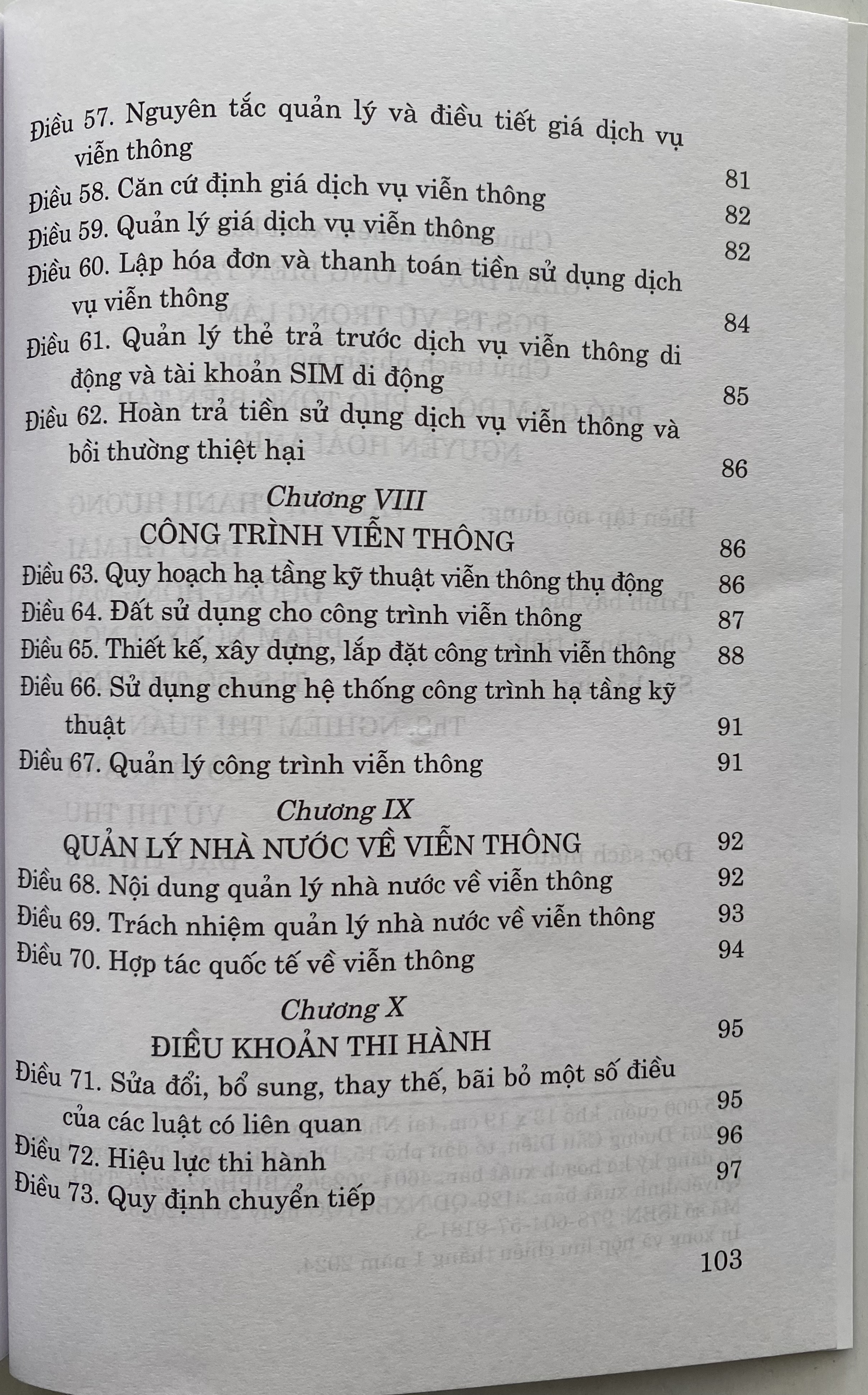 Luật Viễn Thông số 24/2023/QH15 đã được Quốc Hội khoá XV thông qua ngày 24-11-2023. Luật gồm có 10 chương, 73 điều . Luật có hiệu lực áp dụng từ ngày 01-07-2024